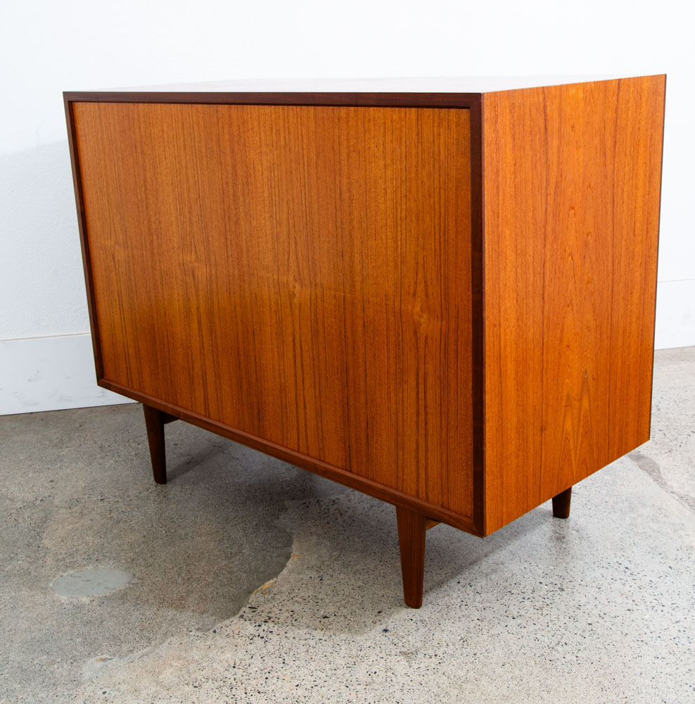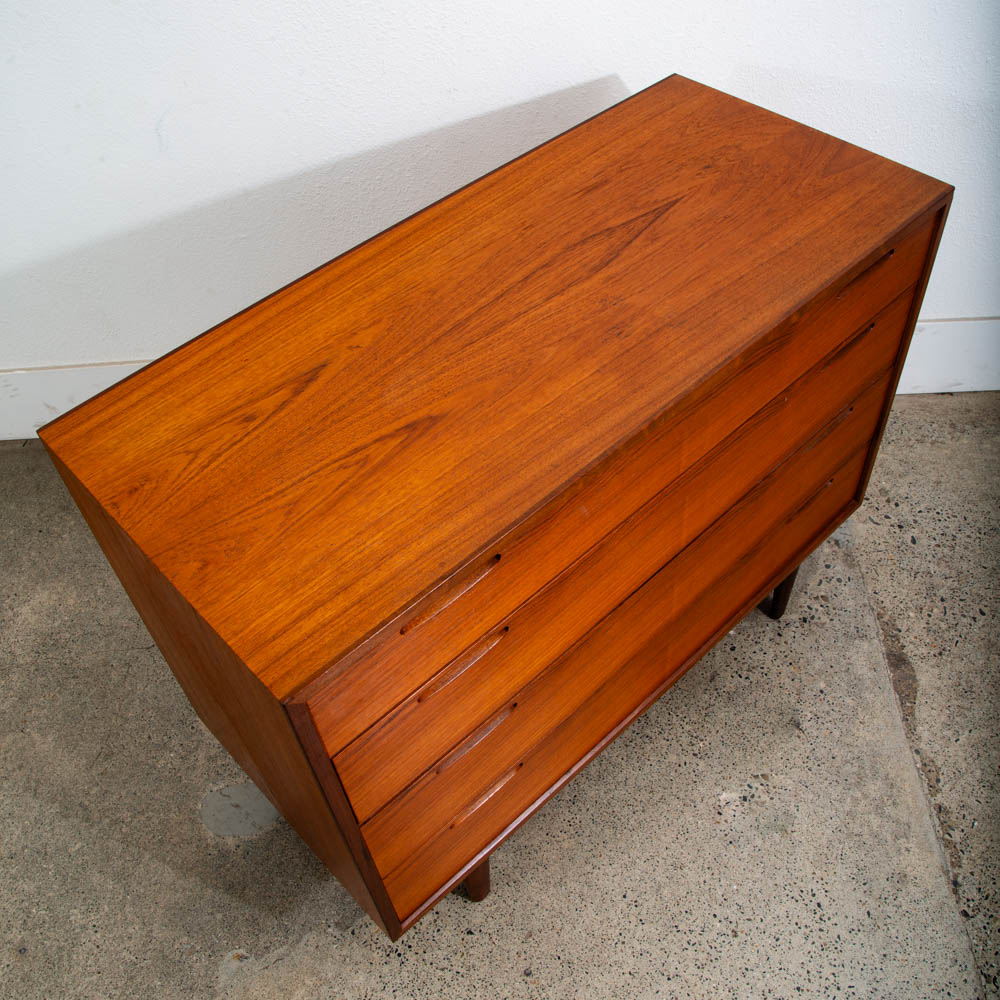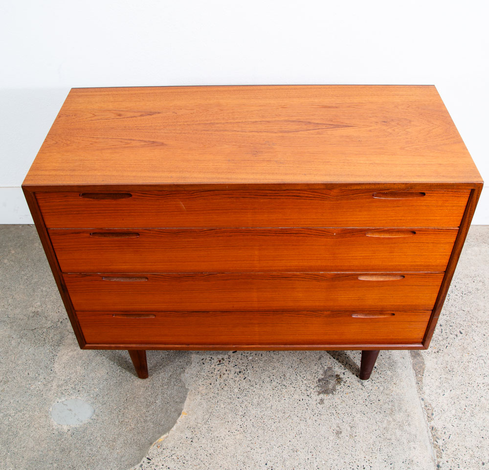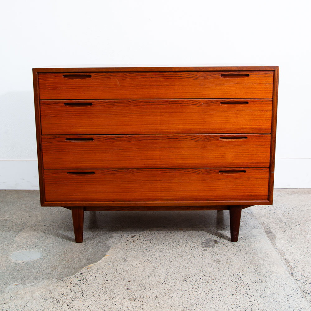 Ib Kofod Larsen 4 Drawer Teak Chest of drawers. Recessed handles give this piece a very sleek unique look. Very nice quality construction. Drawers work properly and smoothly. Please see all photos to ensure you know what you are buying. We include FREE SHIPPING in the listing price. Some exceptions apply, so please read the full shipping details below.