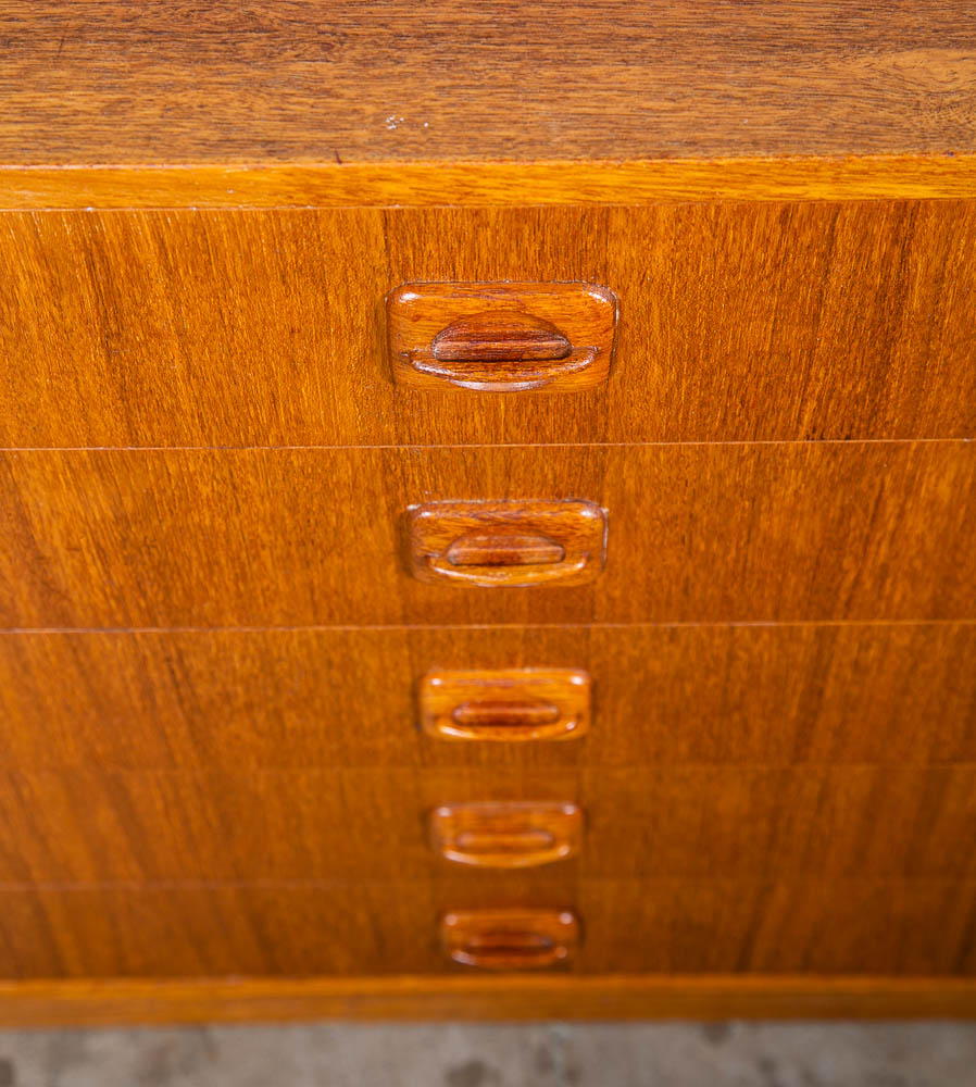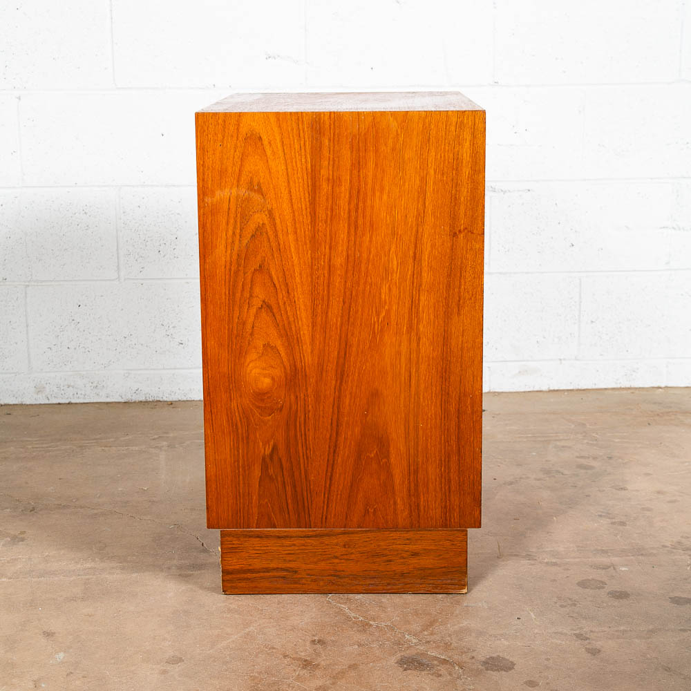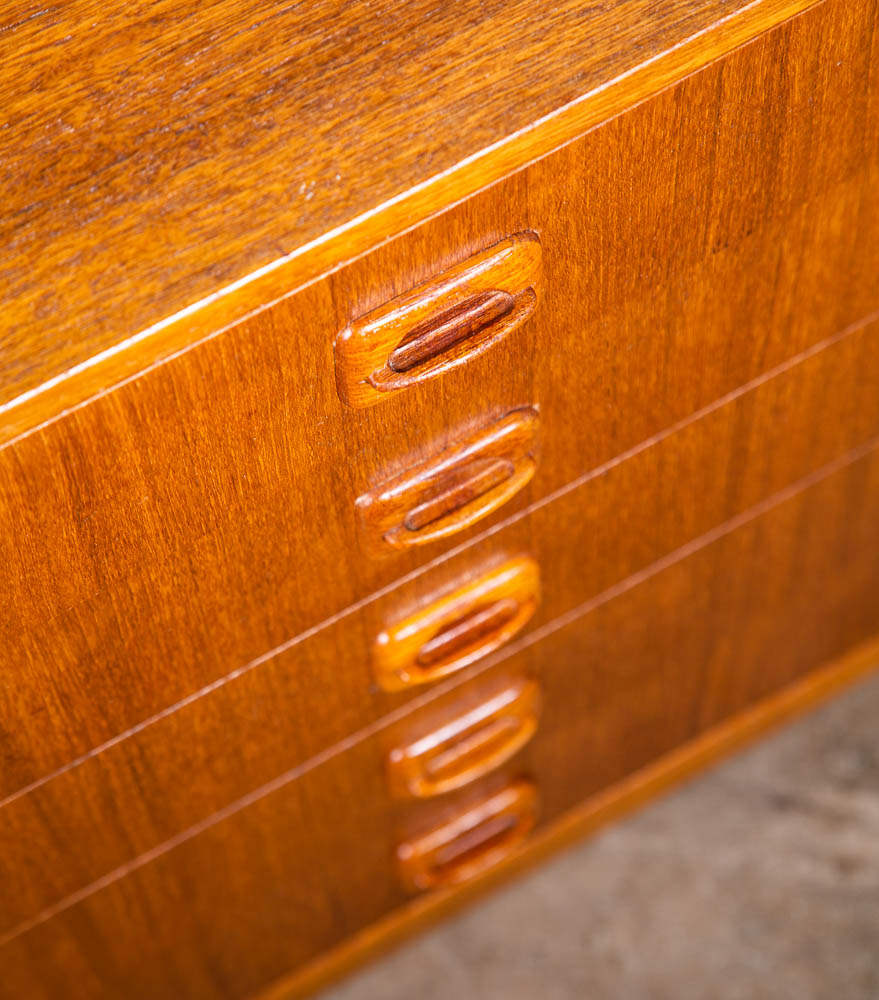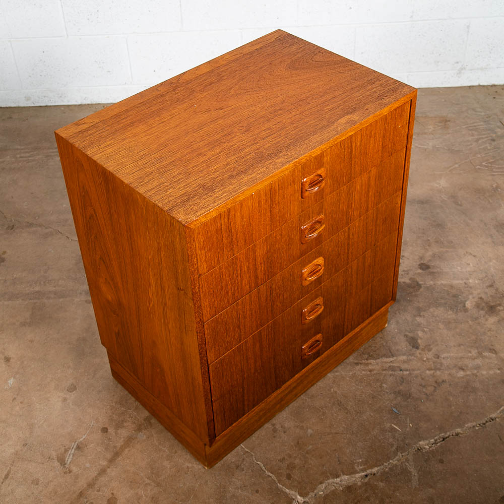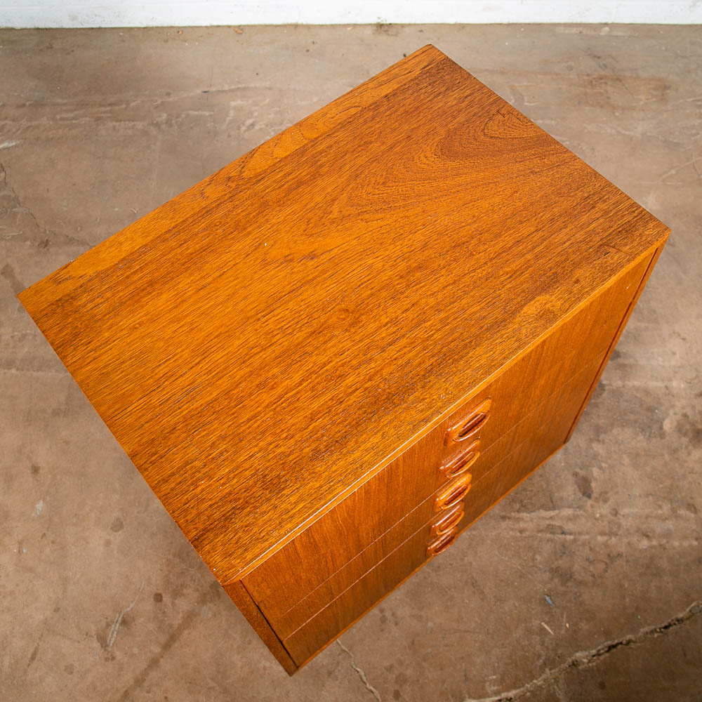 Danish designed mid century modern chest of drawers / compact dresser. Can be used as a nightstand potentially as well due to size. Room on the top surface for display or personal items. Sturdy and well made piece. Unsigned example. Please see all photos to ensure you know what you are buying. We include FREE SHIPPING in the listing price. Some exceptions apply, so please read the full shipping details below.