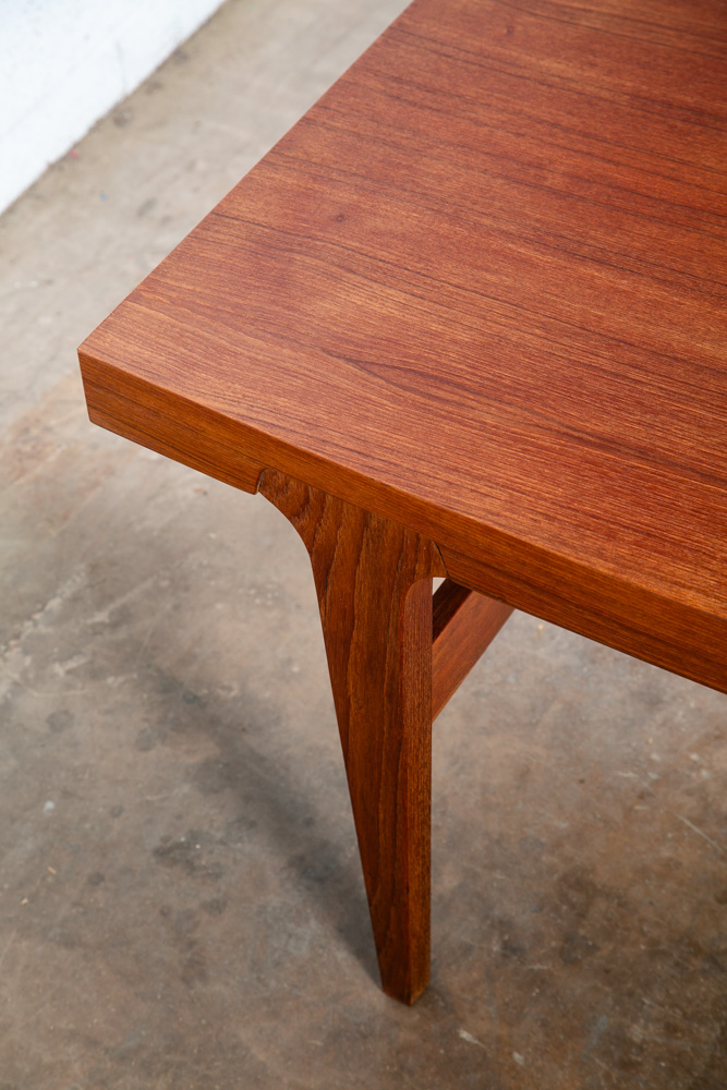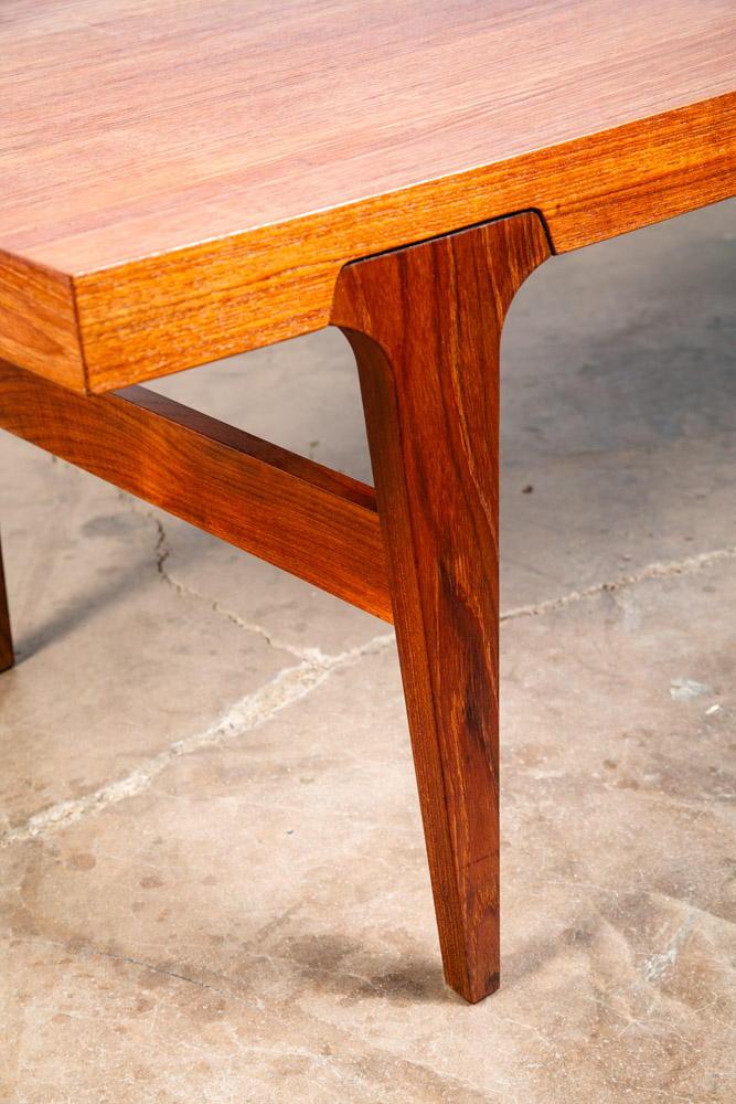 Solid teak coffee surfboard table by Danish designer Johannes Andersen, Denmark. The table offers solid teak construction, sculpted solid teak legs and a beautiful curved shape. Recently imported from Denmark. No damage or wear to note. We include FREE SHIPPING in the listing price. Some exceptions apply, so please read the full shipping details below.