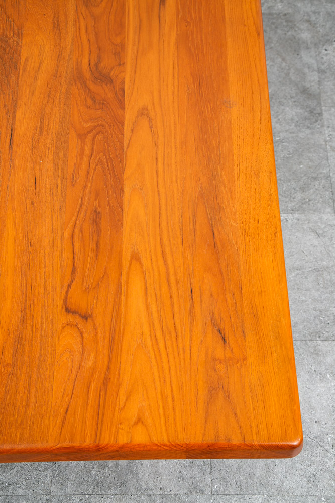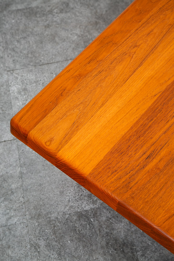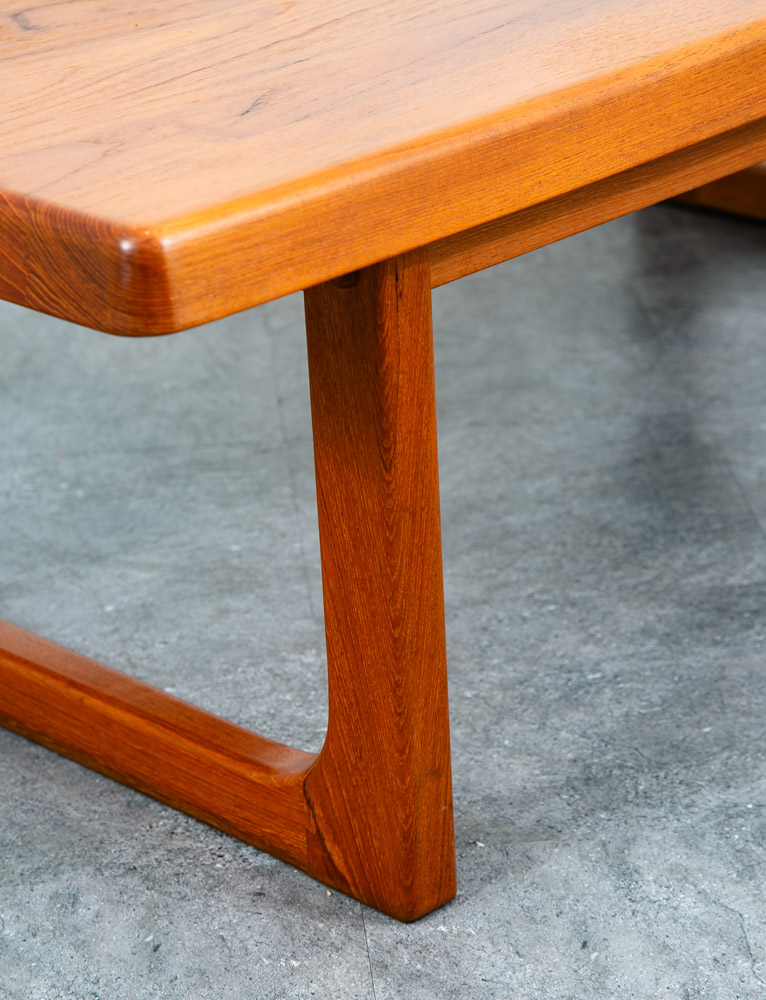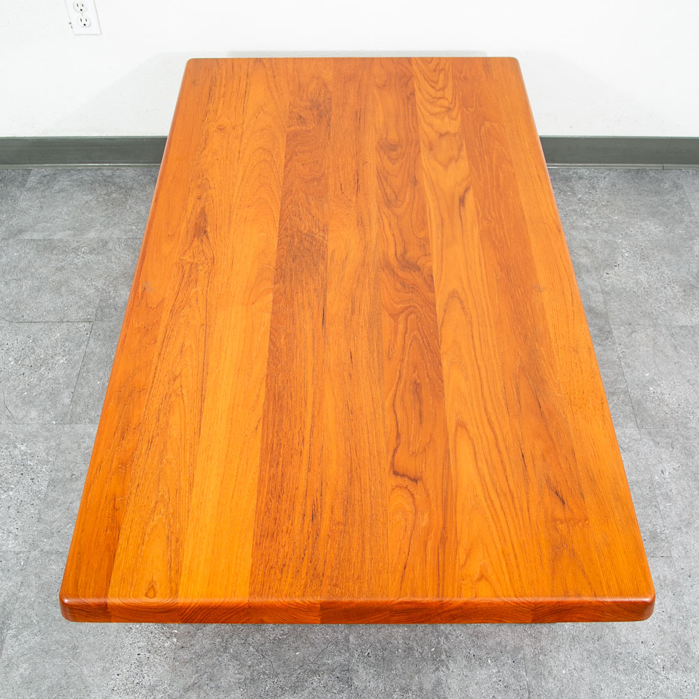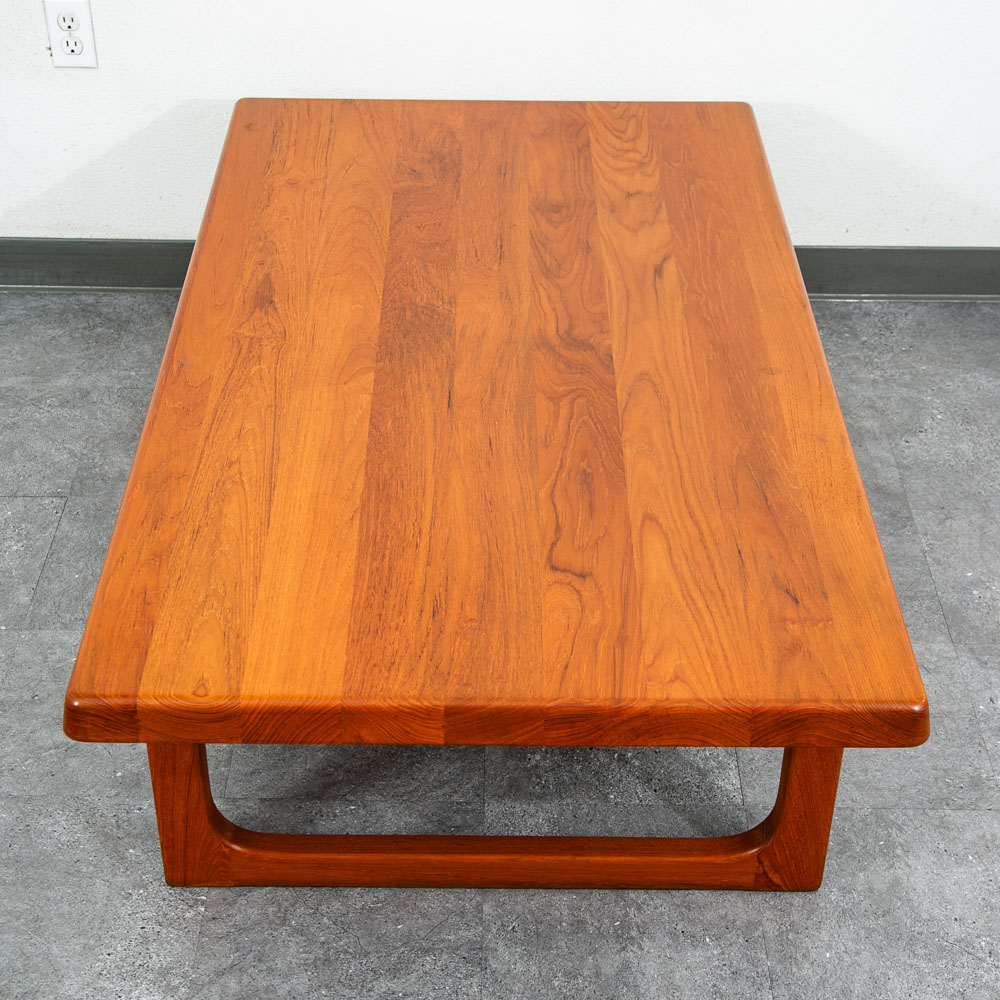 Truly stunning mid century Danish teak sculptural rectangular coffee table. Designed by Danish designer Niels Bach and made by Randers. Sculptural solid teak frame and butcher block solid teak top surface. Wonderful table for any mid century themed home, office or lobby. Please see all photos to ensure you know what you are buying. We include FREE SHIPPING in the listing price. Some exceptions apply, so please read the full shipping details below.