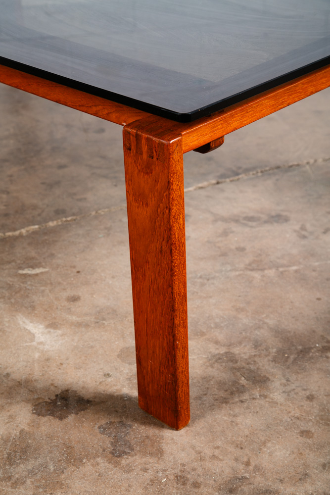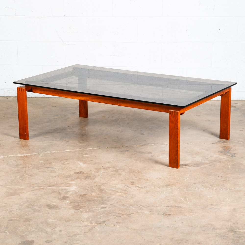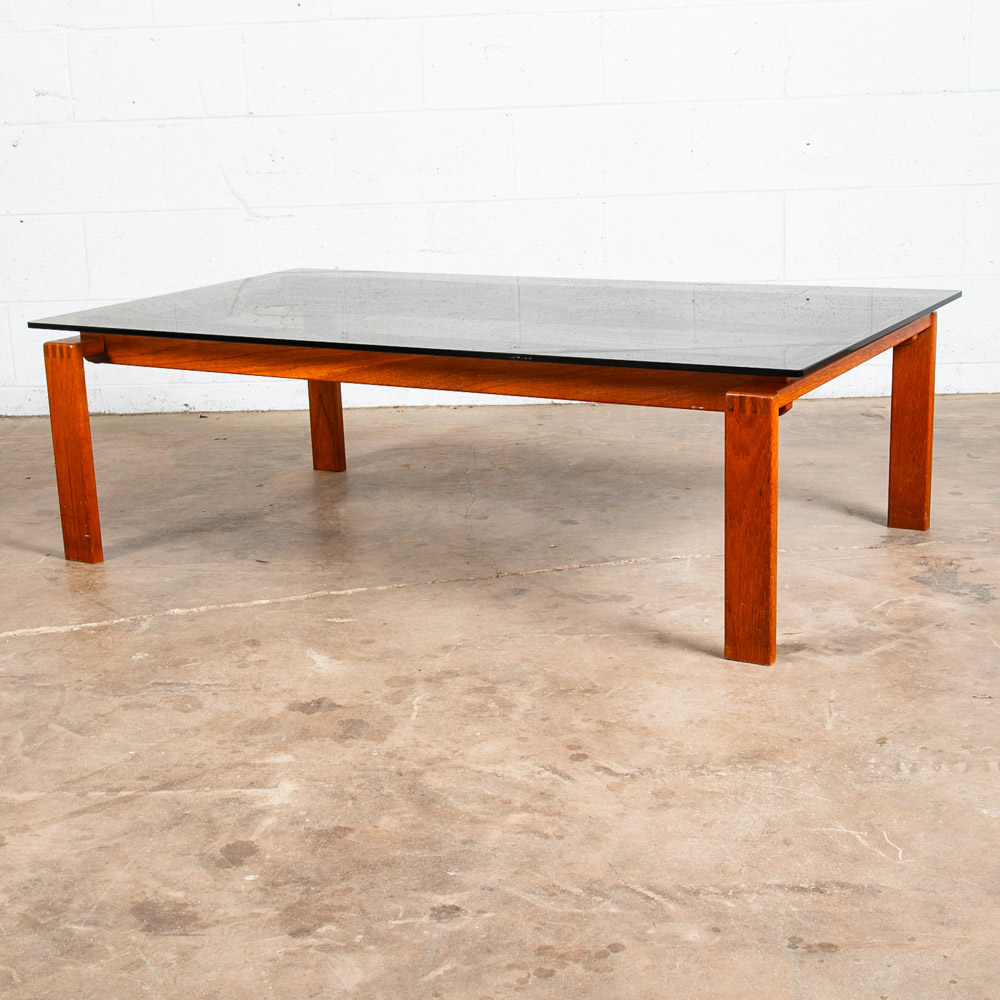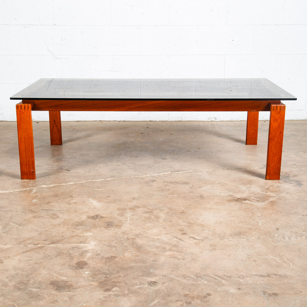 Solid teak and smoked glass coffee table now available. Top surface is made up of dark smoked glass. Unique finger jointed teak frame. Well made Danish designed piece. Please see all photos to ensure you know what you are buying. We include FREE SHIPPING in the listing price. Some exceptions apply, so please read the full shipping details below.