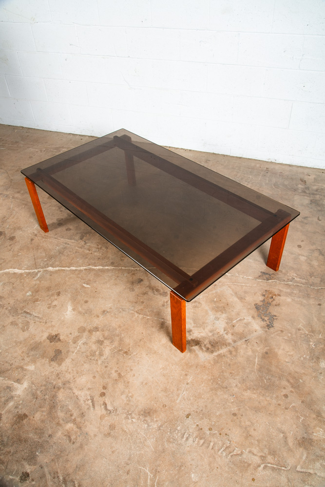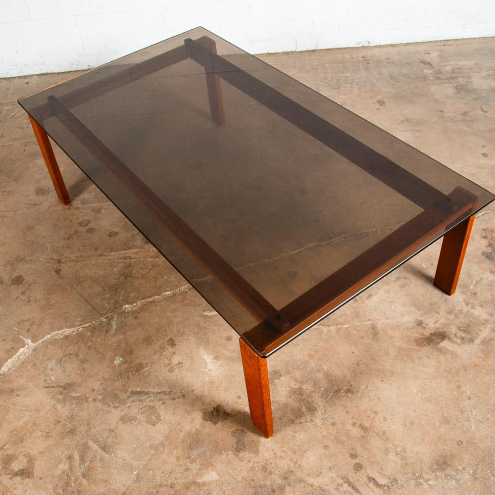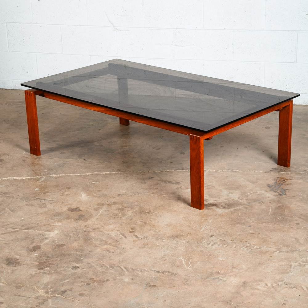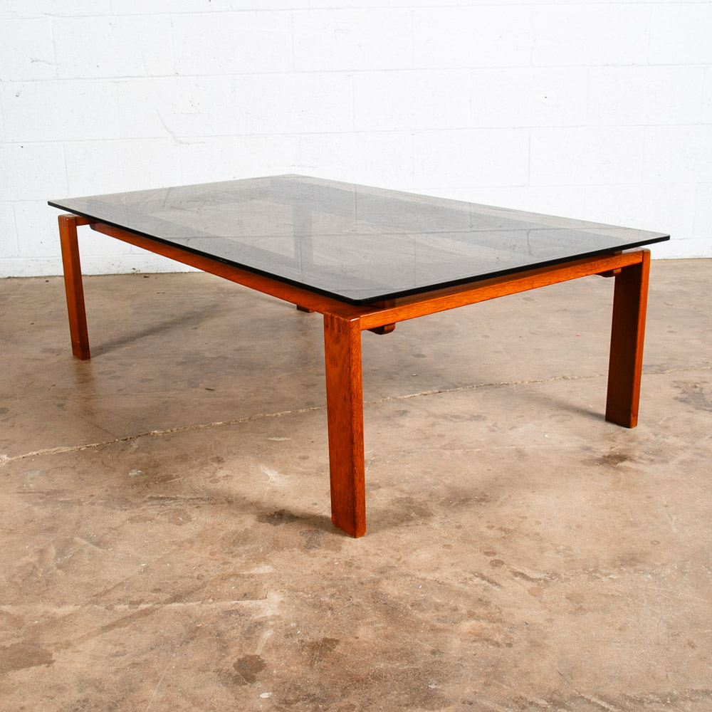 Solid teak and smoked glass coffee table now available. Top surface is made up of dark smoked glass. Unique finger jointed teak frame. Well made Danish designed piece. Please see all photos to ensure you know what you are buying. We include FREE SHIPPING in the listing price. Some exceptions apply, so please read the full shipping details below.