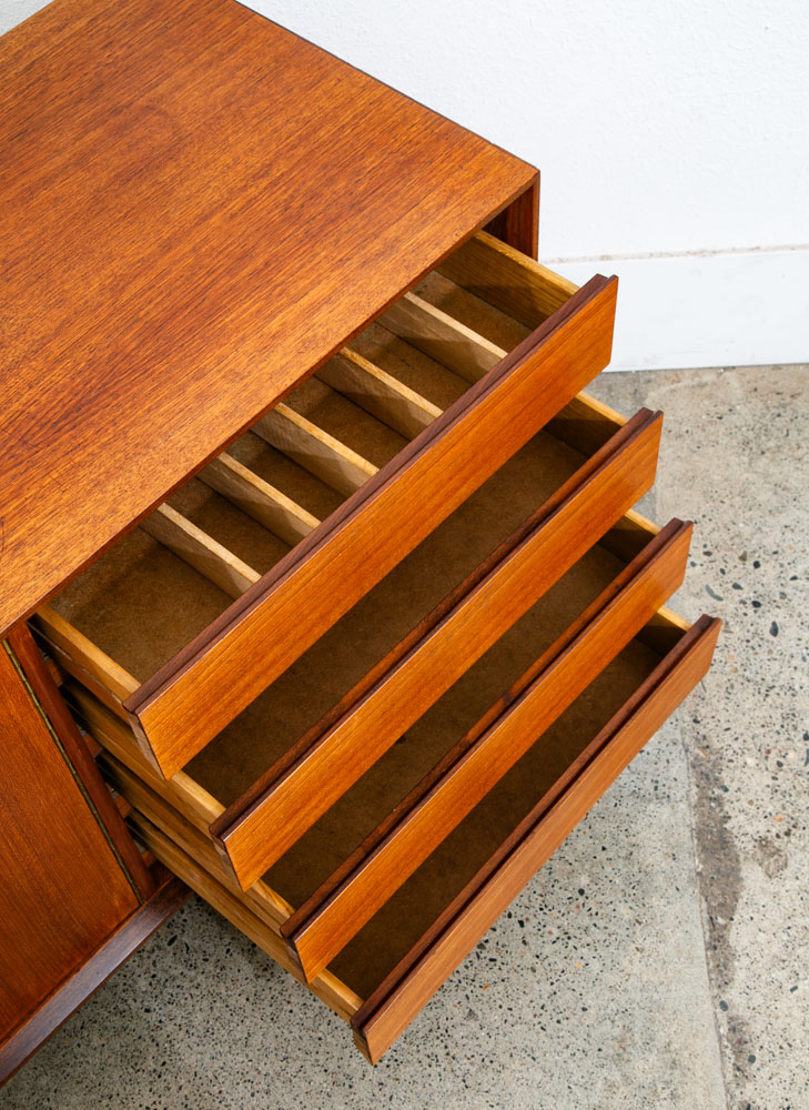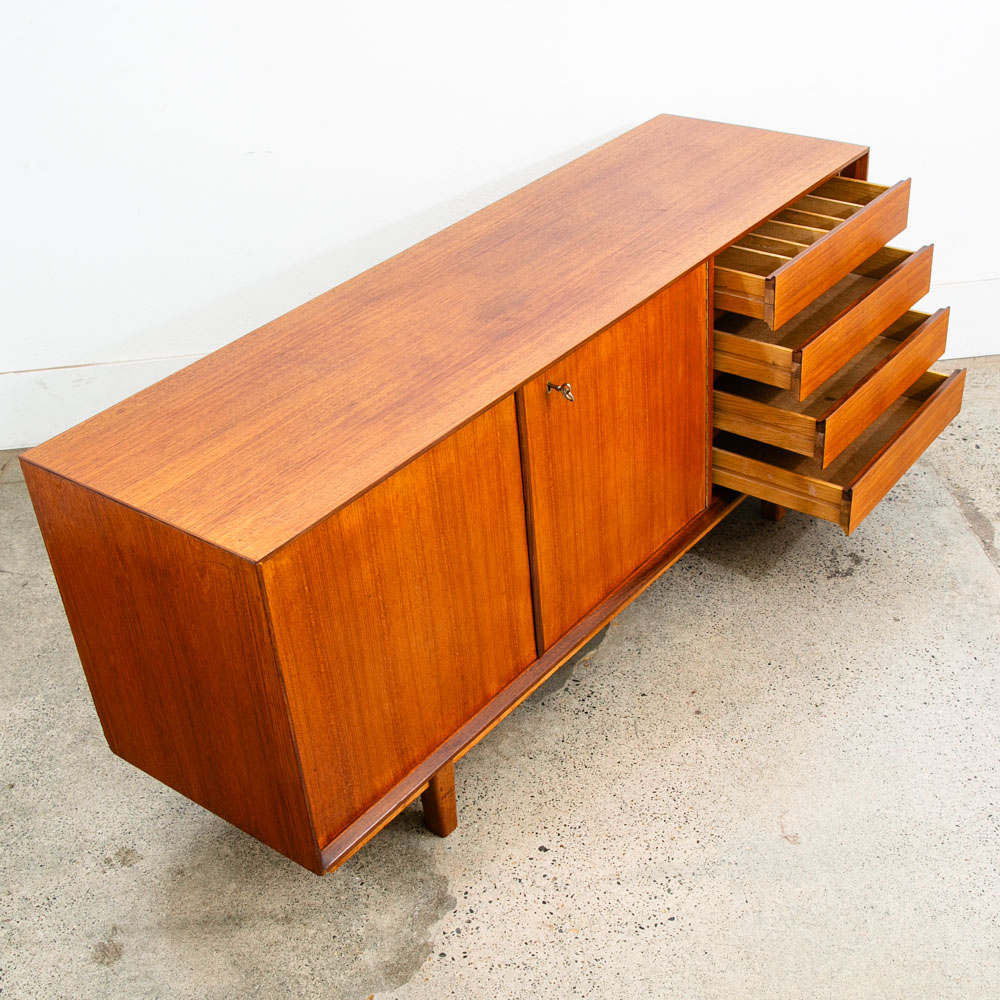 Beautiful teak Danish modern credenza stamped #137. Comes with locking storage with adjustable shelving as well as 3 storage drawers on the right side. Fantastic quality and design. Please see all photos to ensure you know what you are buying. We include FREE SHIPPING in the listing price. Some exceptions apply, so please read the full shipping details below.