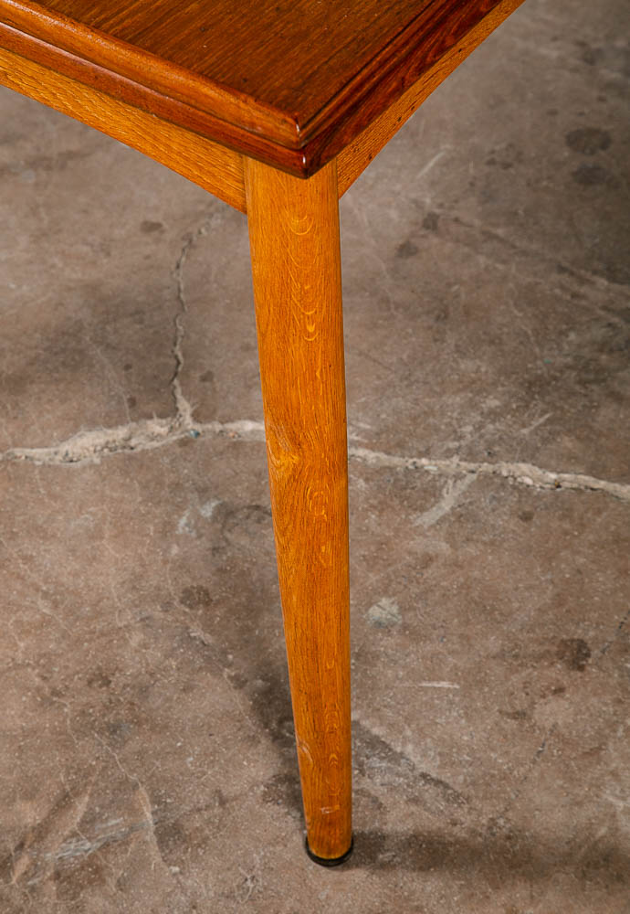 Teak and Beech Danish Modern draw leaf Dining table by the iconic Borge Mogensen for Soborg Mobler. The table can stay compacted or can be extended fairly easily This piece has been restored on top, oiled and cleaned throughout and is ready for your home or space. It carries the original Soborg stamp beneath the table. The construction is outstanding throughout. Please see all photos to ensure you know what you are buying. We include FREE SHIPPING in the listing price. Some exceptions apply, so please read the full shipping details below.