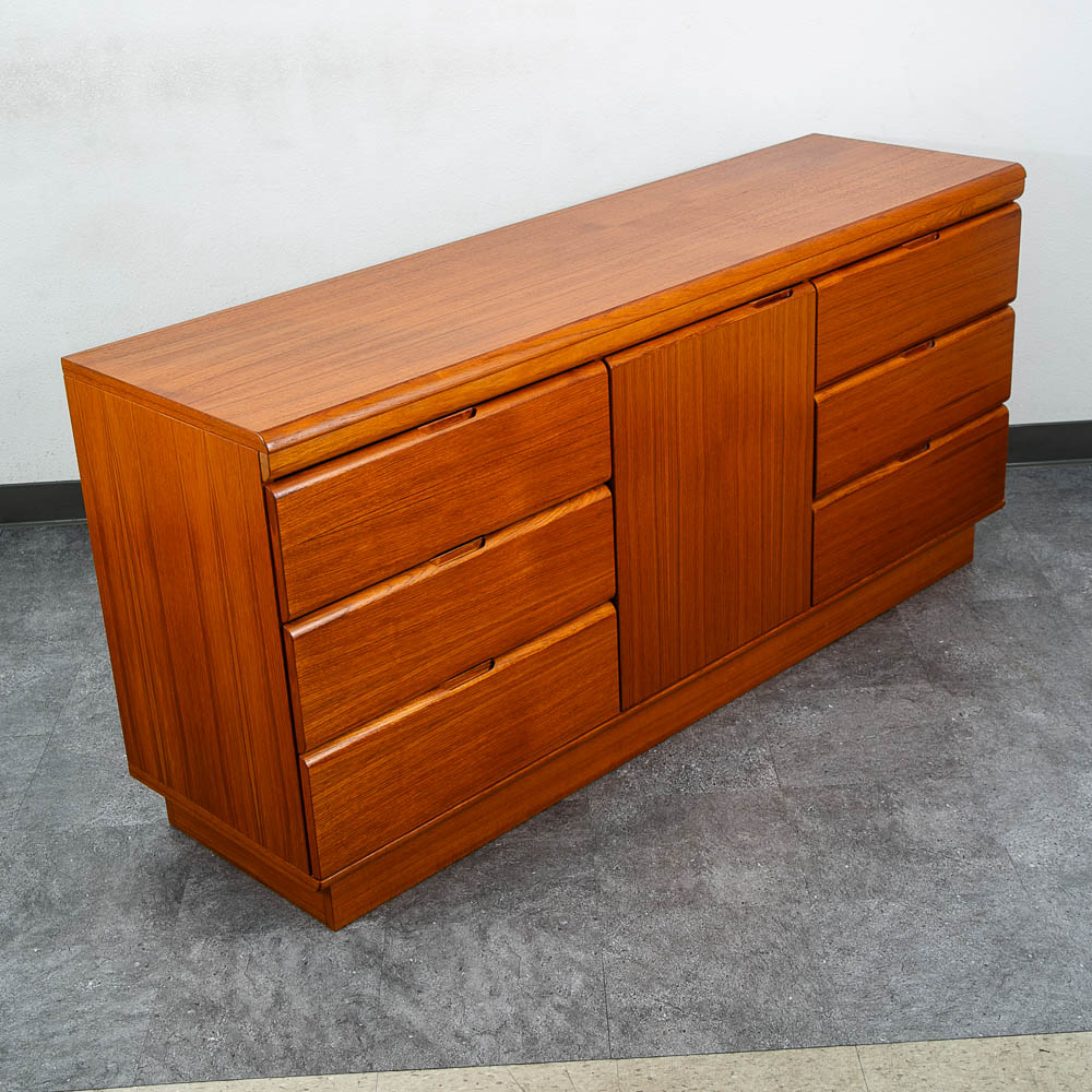 Mid Century Danish Modern Dresser Credenza 6 Drawer Teak Cabinet Denmark Shelf