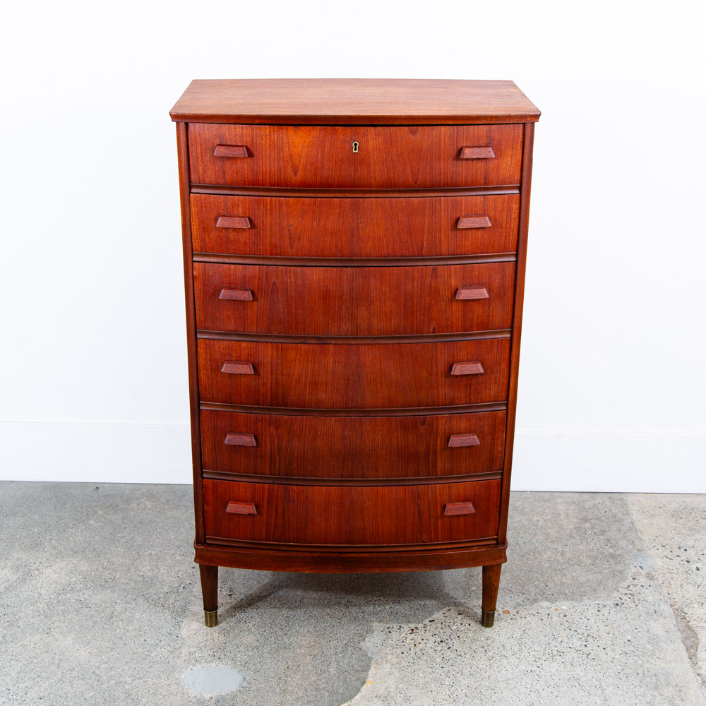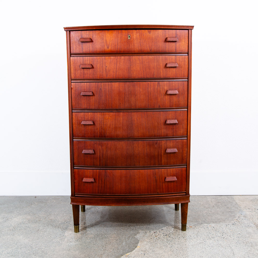 Mid Century Danish Modern Highboy Dresser 6 Drawer Teak Handles Denmark Locking