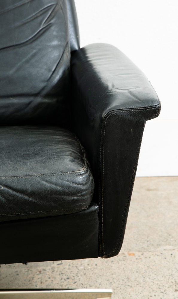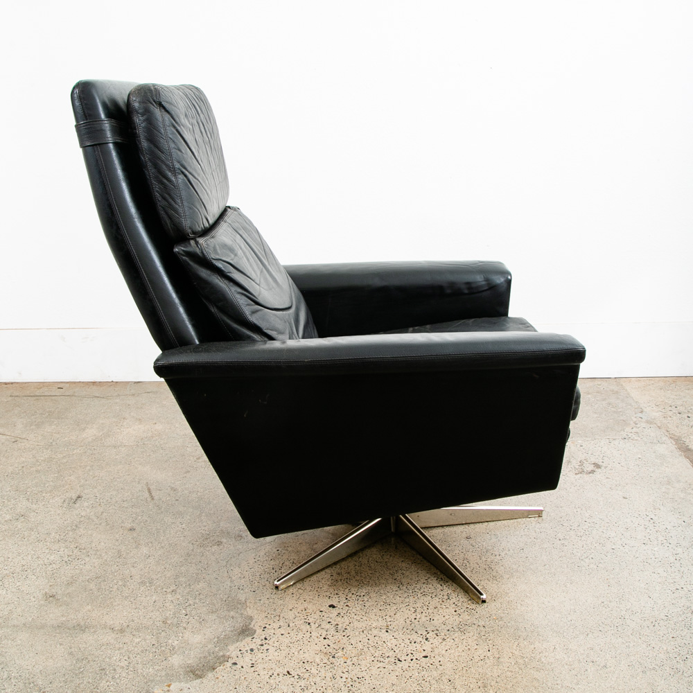 Mid Century Danish Modern Lounge Chair Georg Thams Black Leather Denmark Swivel