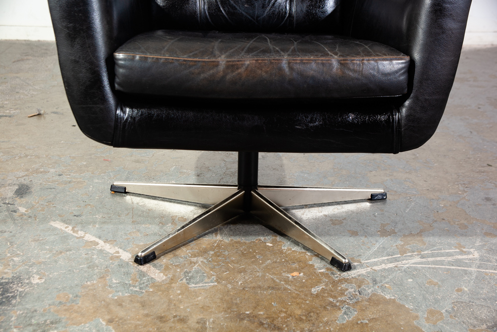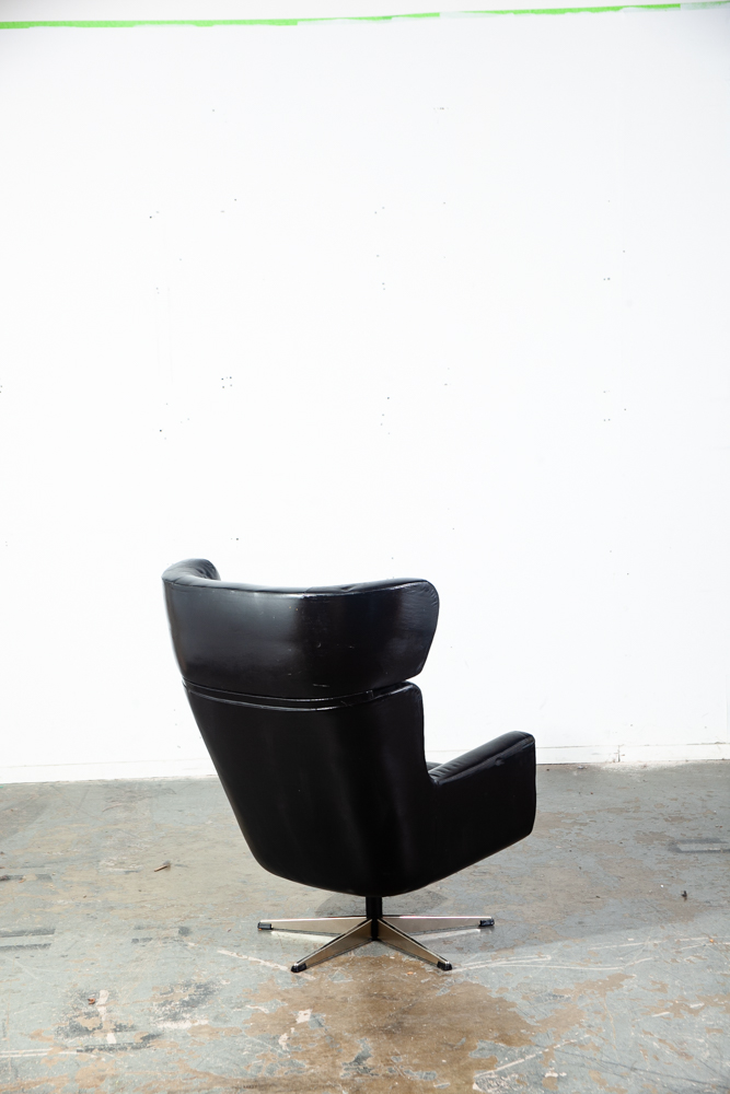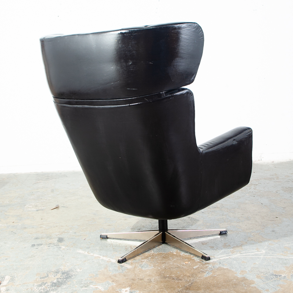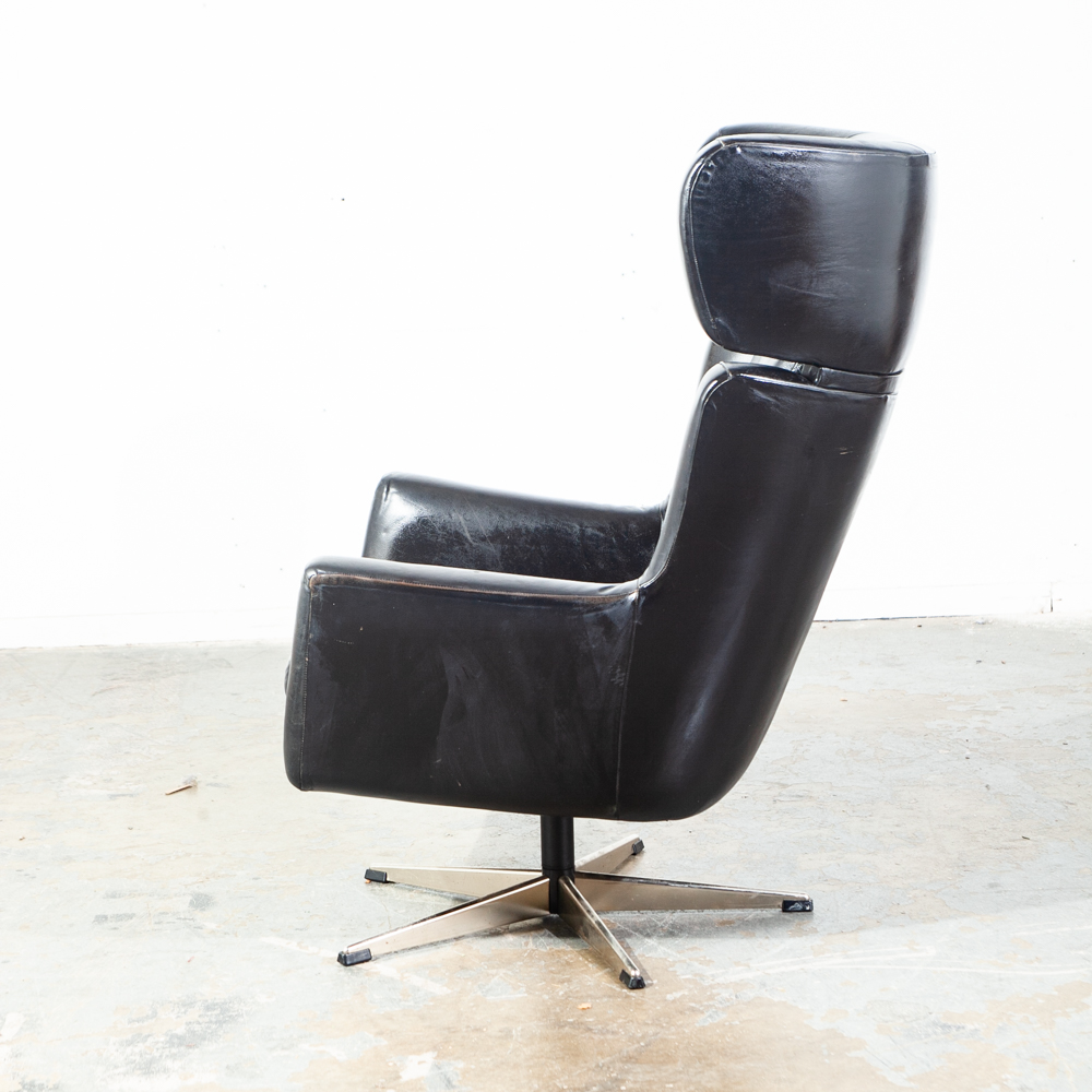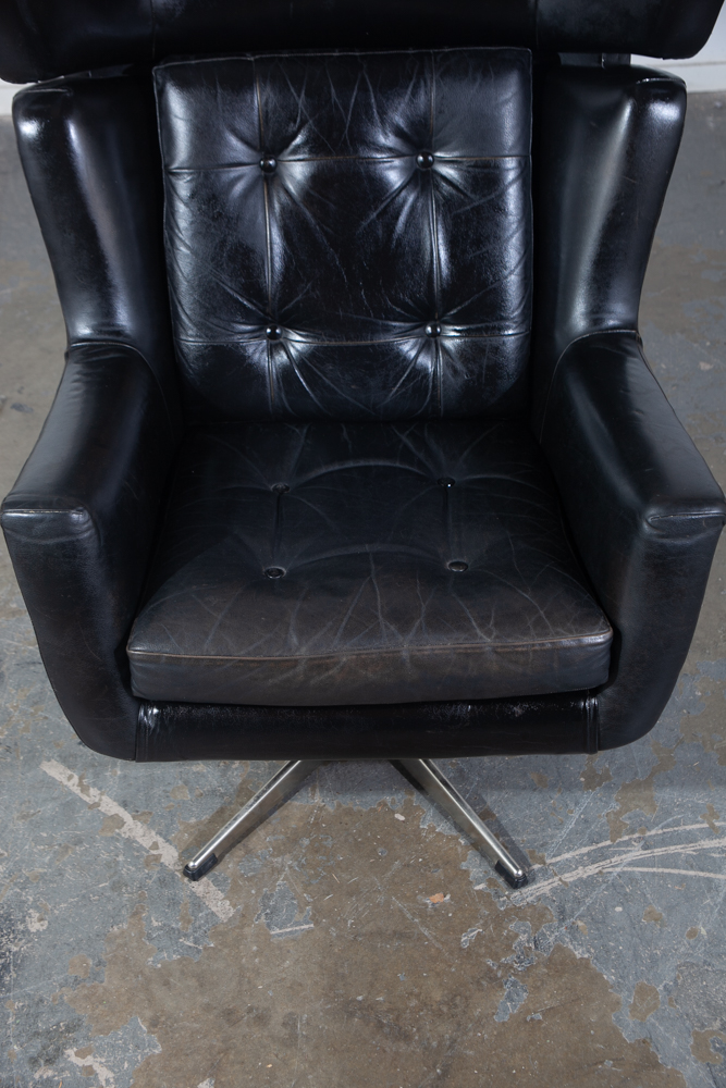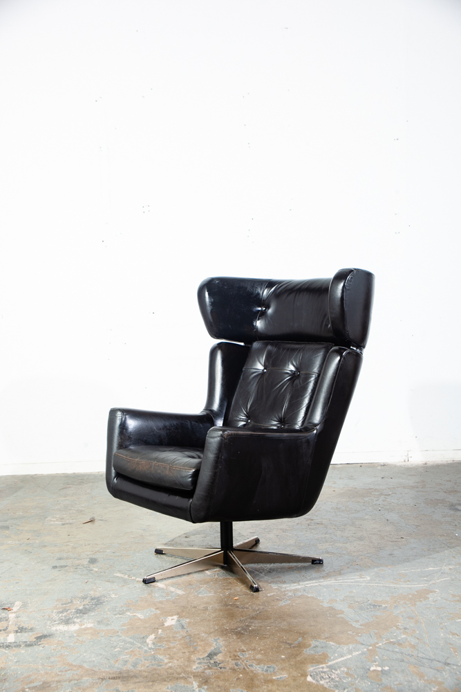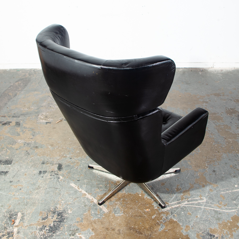 Mid Century Danish Modern Lounge Chair Skjold Sorensen Black Leather Denmark Swivel Armchair Recliner Vintage Executive