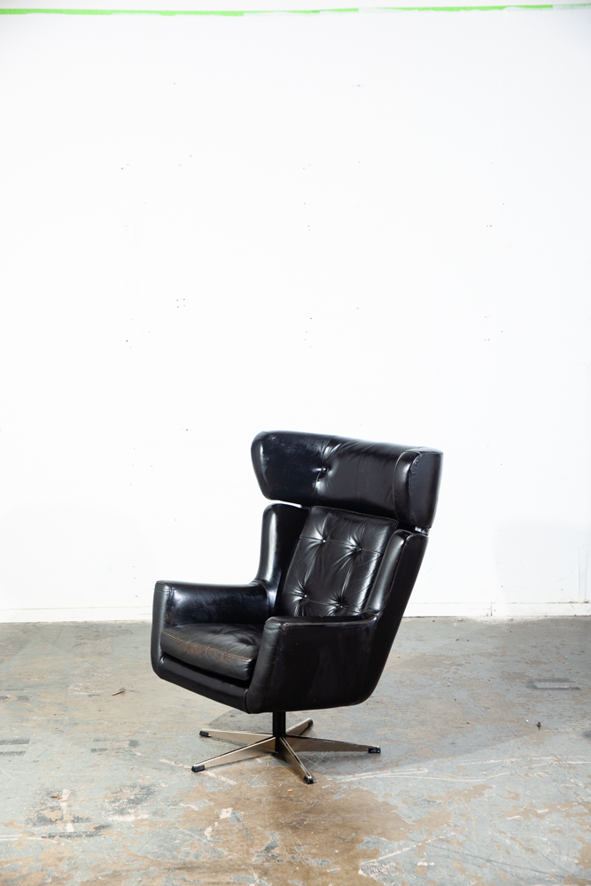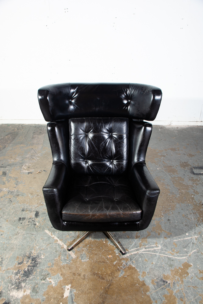The perfect executive chair or modern day Dr. evil chair. This unique piece comes in from Denmark and was produced by Skjold Sorensen. This black scandanavian chair offers rich thick leather and metal 5 point frame. Unique and well made piece throughout. You can feel and see the danish design and construction throughout. Absolutely stunning piece that immediately takes over any room. Swivels 360 degrees. Please see all photos to ensure you know what you are buying. We include FREE SHIPPING in the listing price. Some exceptions apply, so please read the full shipping details below.
