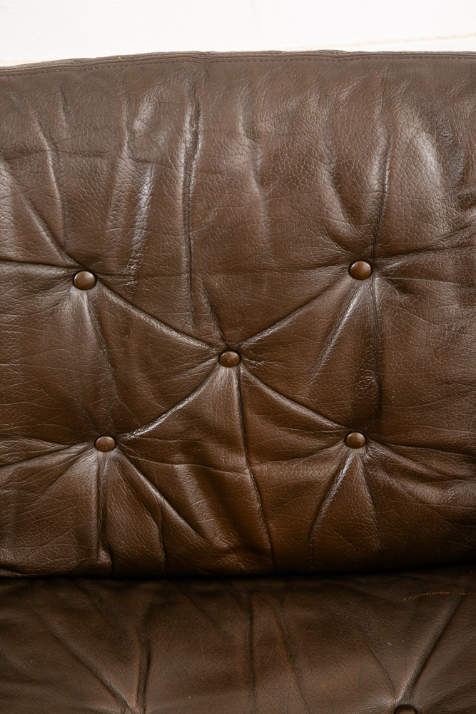 Bentwood brown tufted leather lounge chair / armchair set. Uniquely designed with a tandem style seat and plush leather tufted cushions. All cushions offer tufted style with matching buttons throughout. Well made and comfortable. This was recently imported directly from Denmark. .Please see all photos to ensure you know what you are buying. We include FREE SHIPPING in the listing price. Some exceptions apply, so please read the full shipping details below.