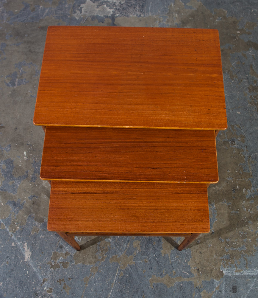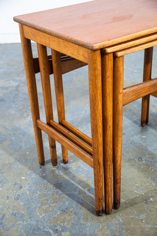 Mid Century Danish Modern Nesting Tables Hans Wegner Andreas Tuck Teak Oak Wood 3 Set Denmark Mobler Vintage