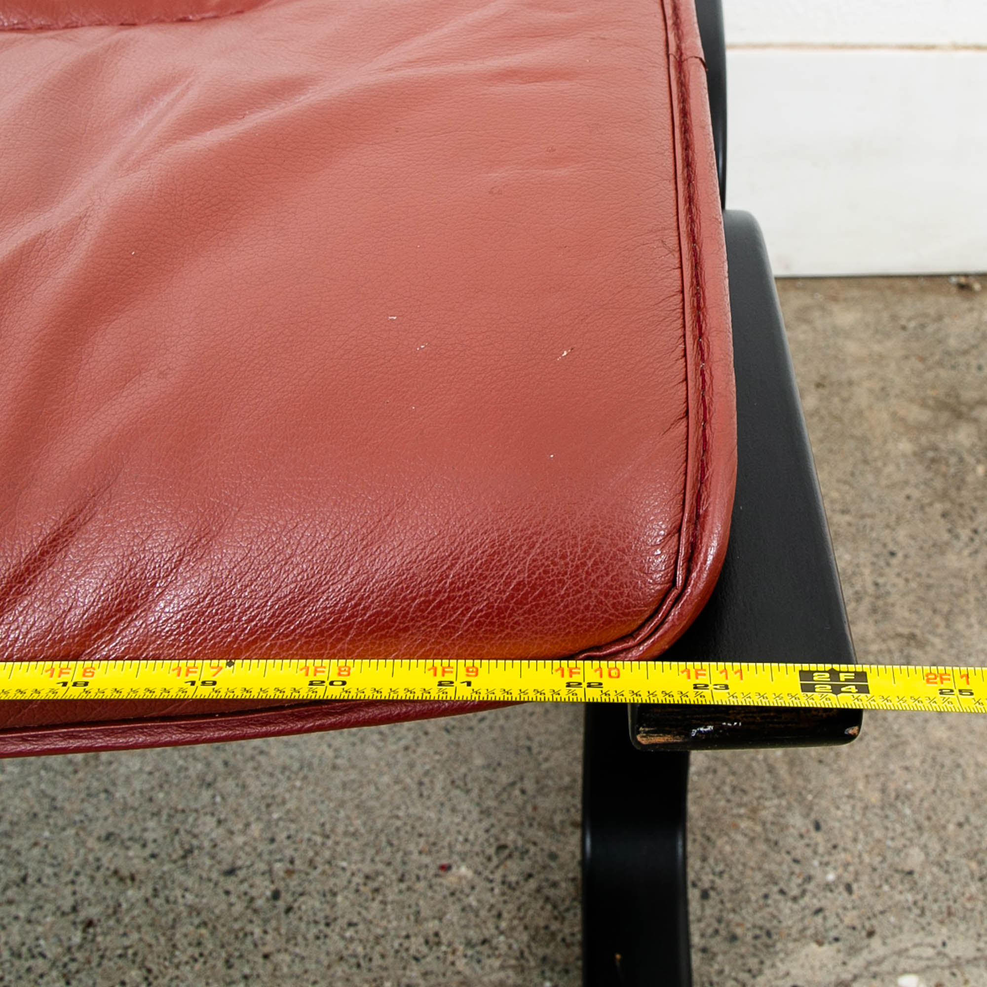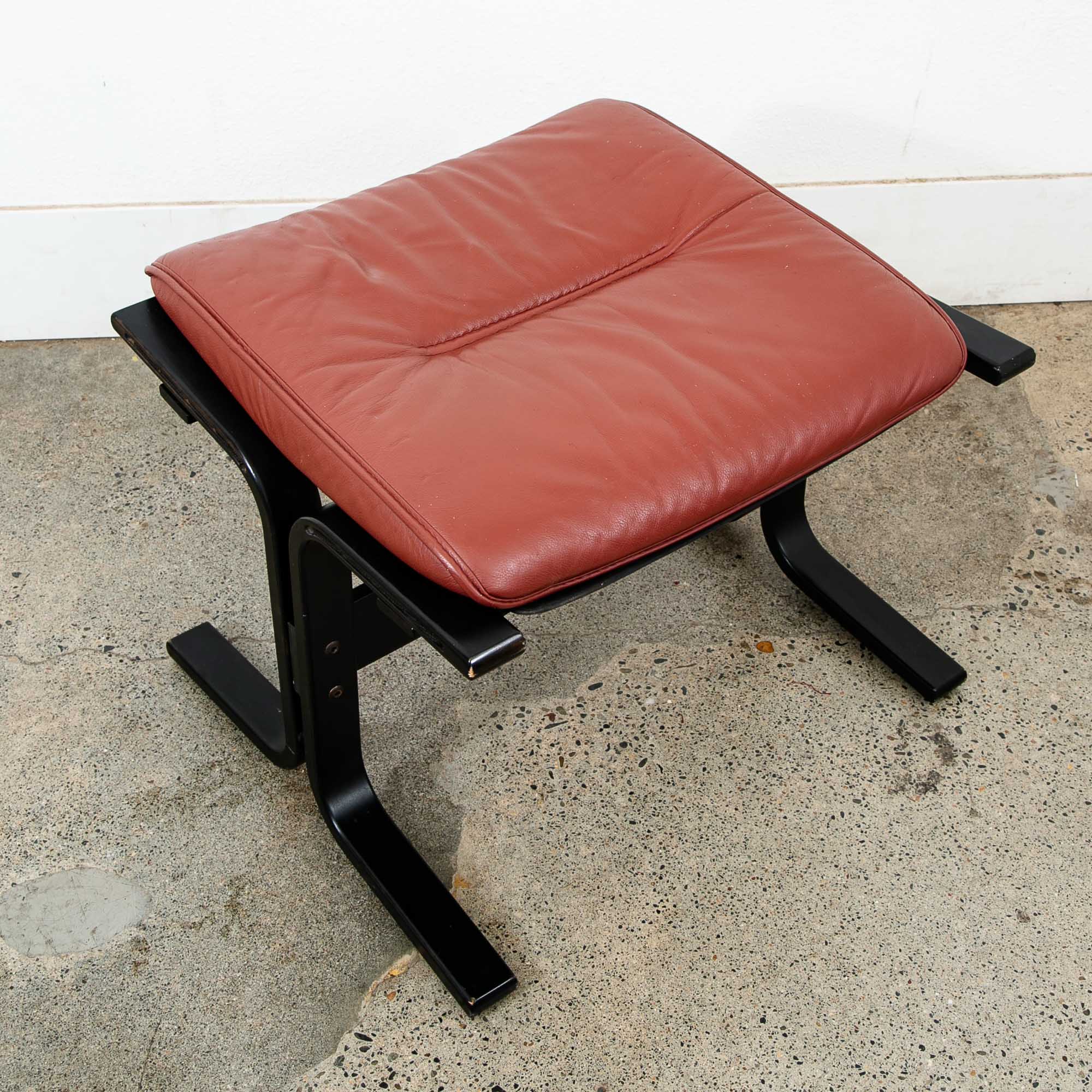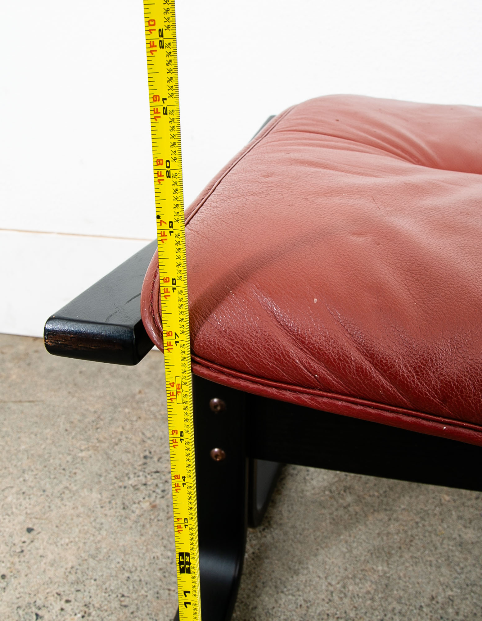 Bentwood ottoman with a red leather cushion by Westnofa. Made in Norway. Please see all photos to ensure you know what you are buying. We include FREE SHIPPING in the listing price. Some exceptions apply, so please read the full shipping details below.