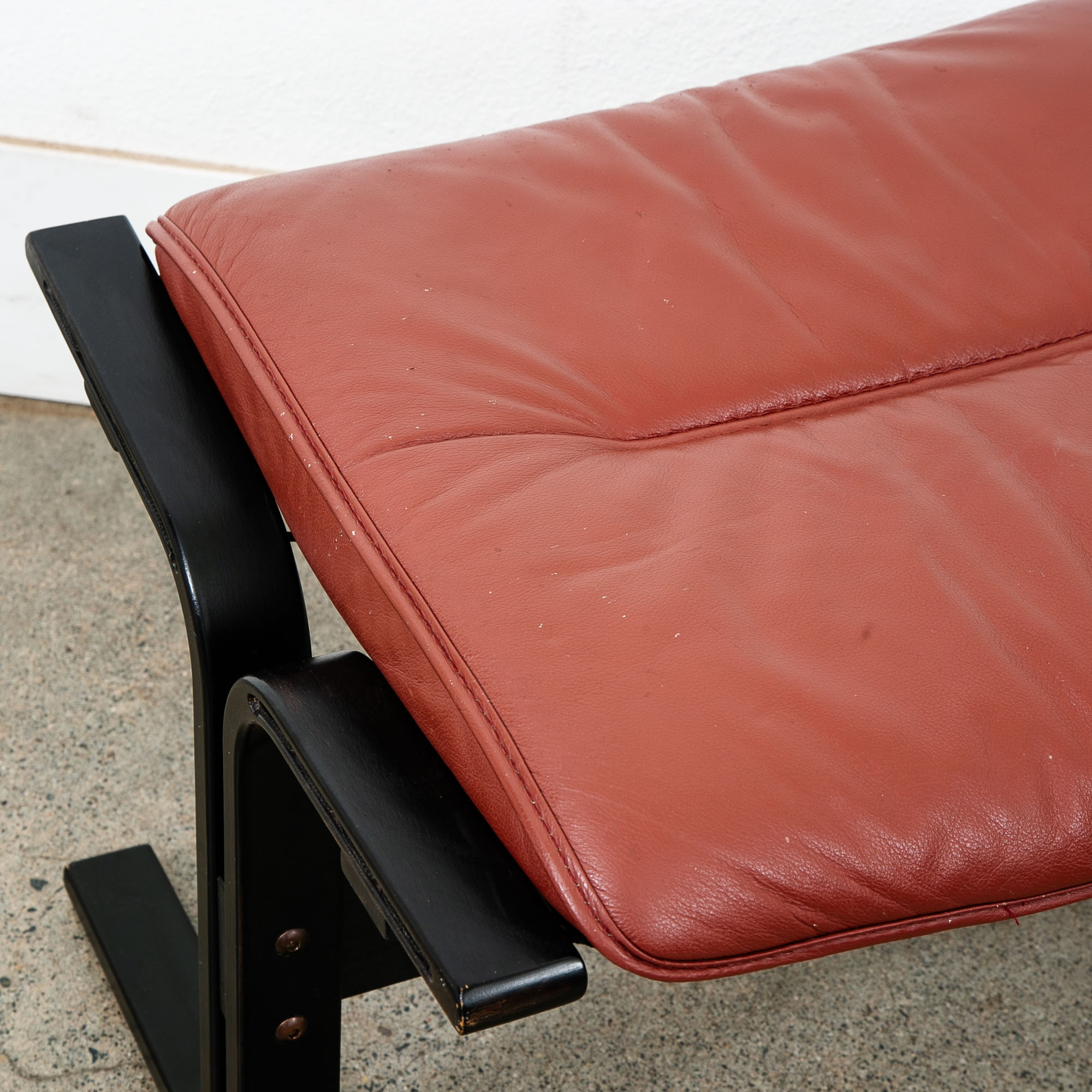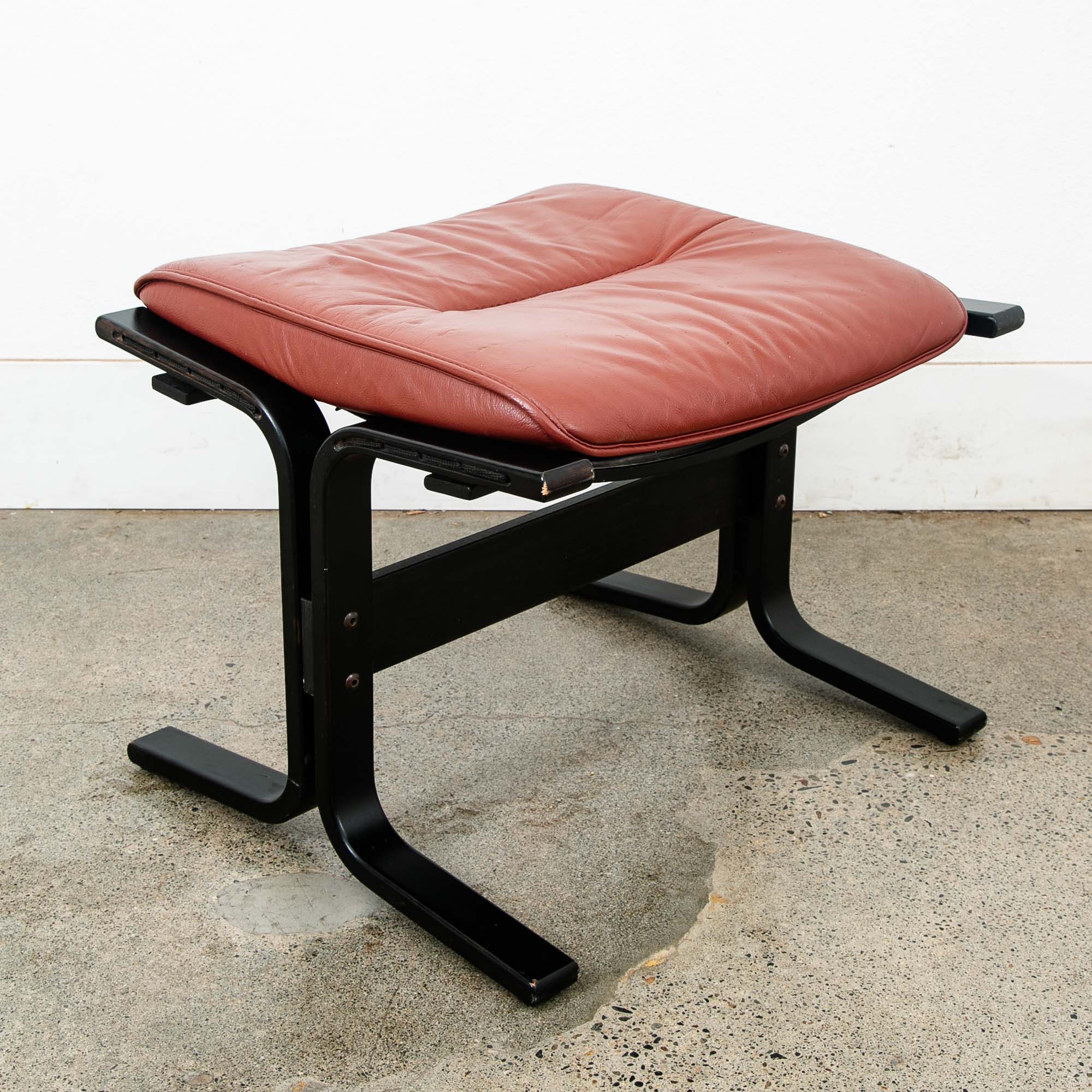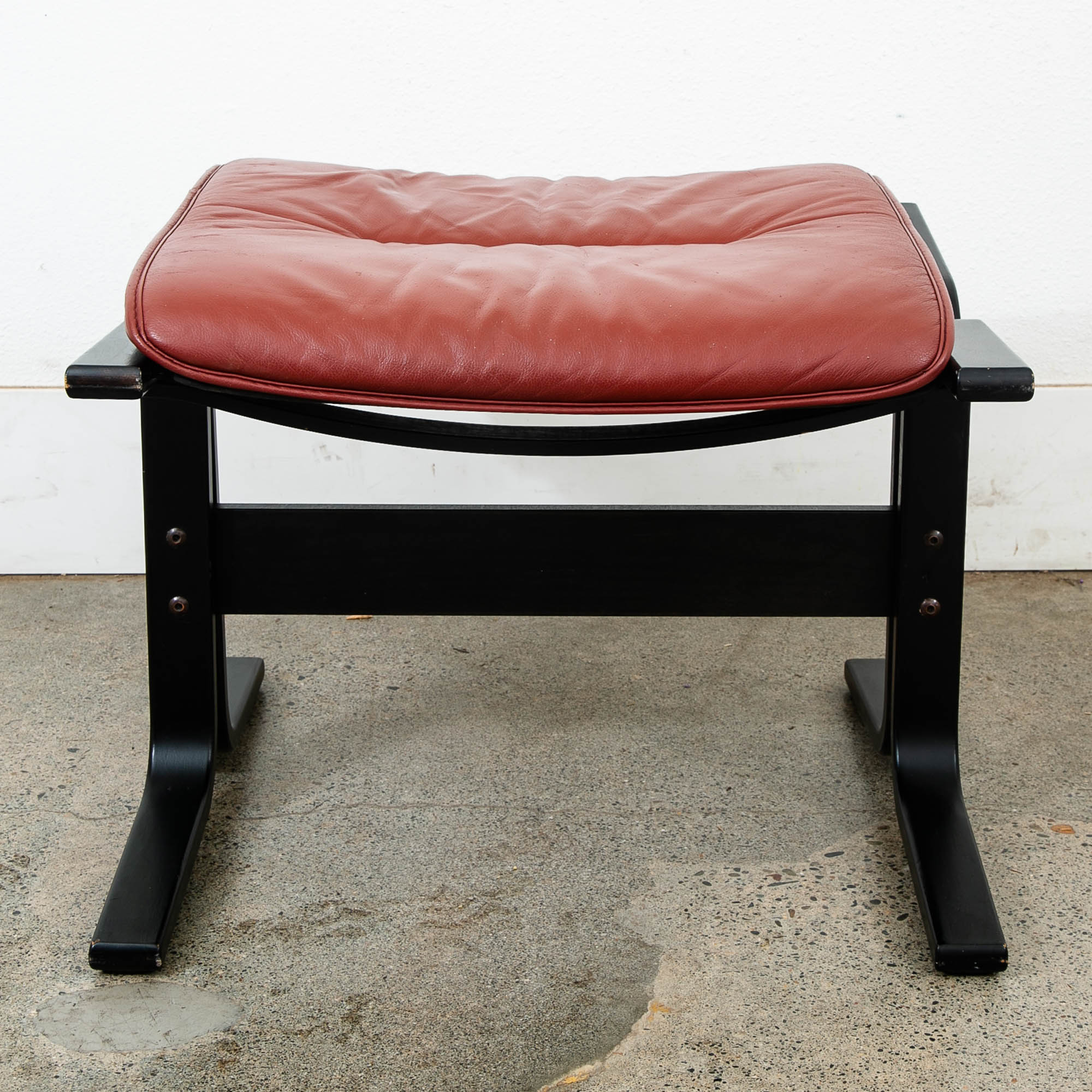 Bentwood ottoman with a red leather cushion by Westnofa. Made in Norway. Please see all photos to ensure you know what you are buying. We include FREE SHIPPING in the listing price. Some exceptions apply, so please read the full shipping details below.