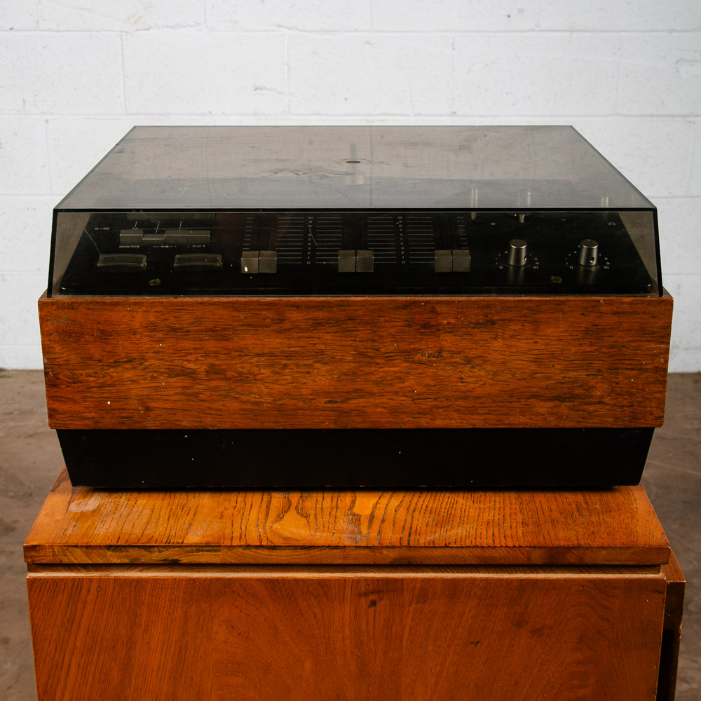 Condition report: Good physical condition. Dust cover intact. Comes with original manual. Due to the european plug, This item is untested. Comes with some marked within the metal platter. May need some work or repair. We carry 2 of these units, one of which was noted a parts unit.