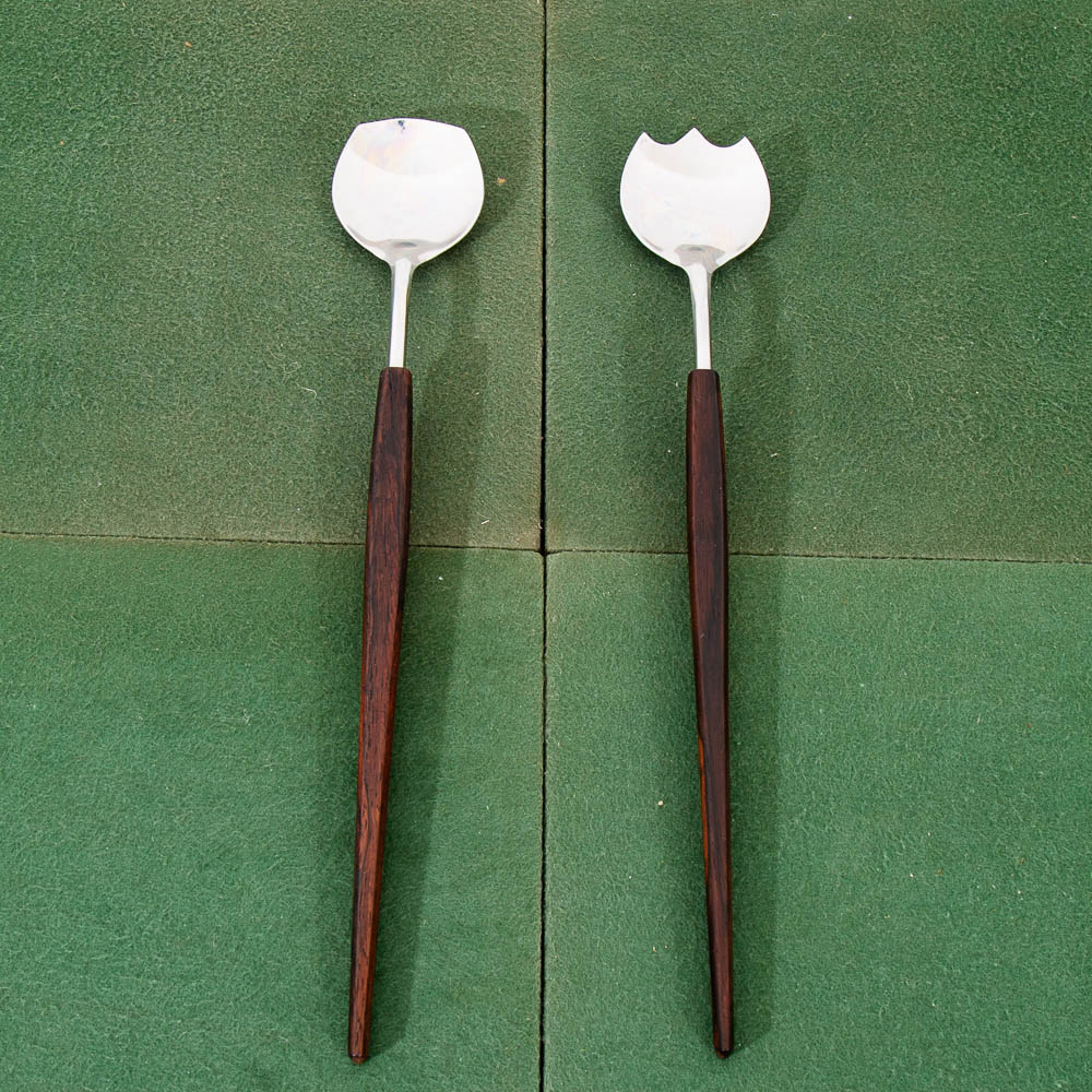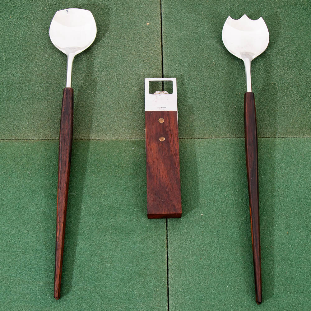 Mid Century Danish Modern Rosewood Stainless Spoon Fork Bottle Opener Set of 3