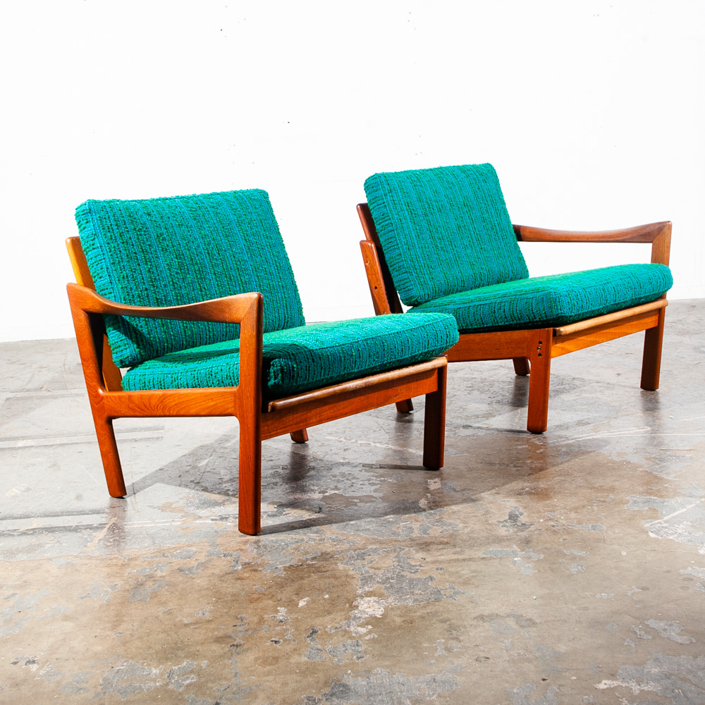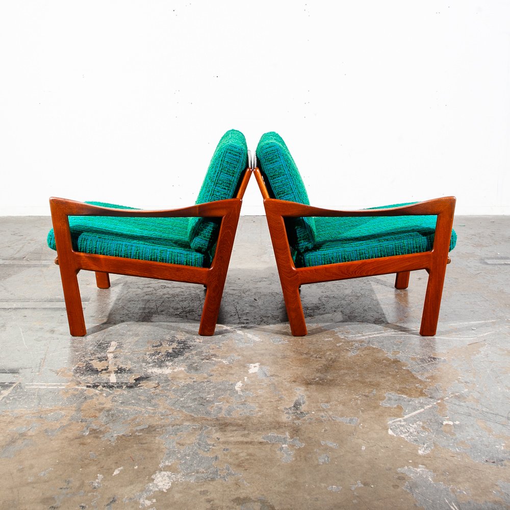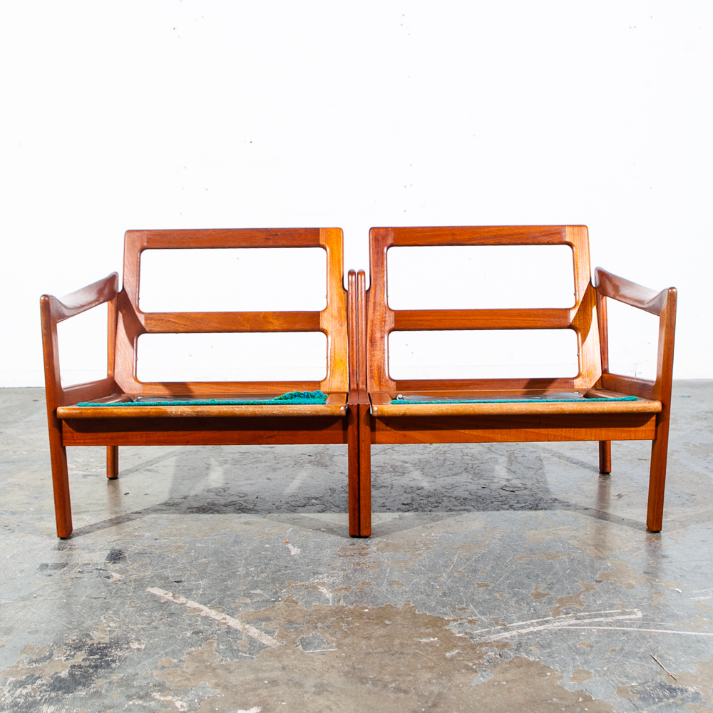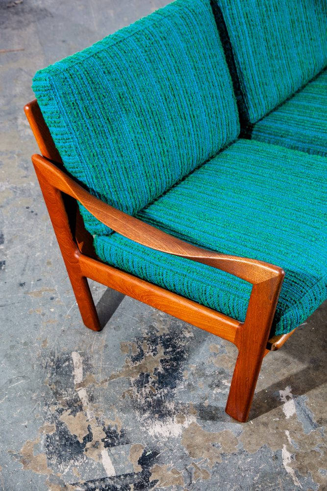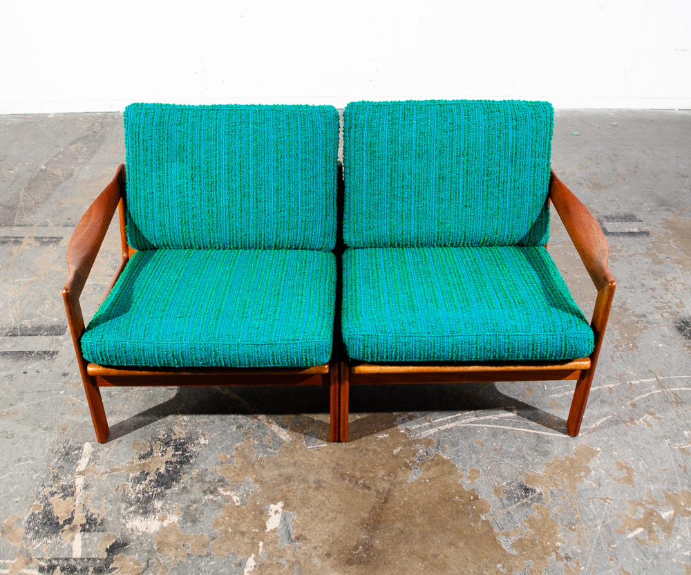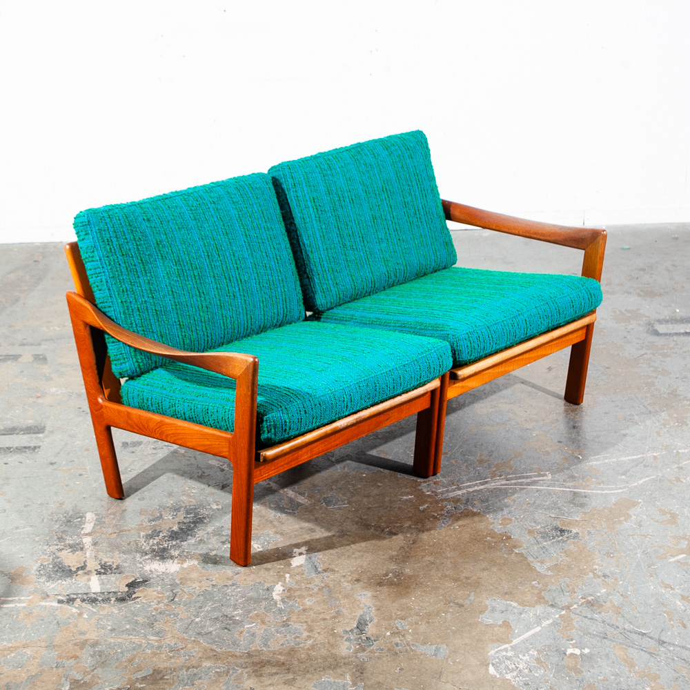 Mid Century Danish Modern Settee Sofa Aqua Chairs Teak Wood Illum Wikkelso N Eilersen Vintage Loveseat Denmark Mcm Two Seater