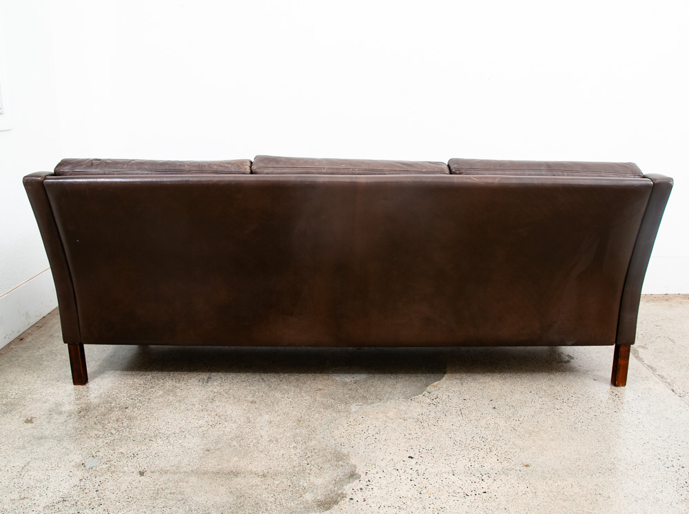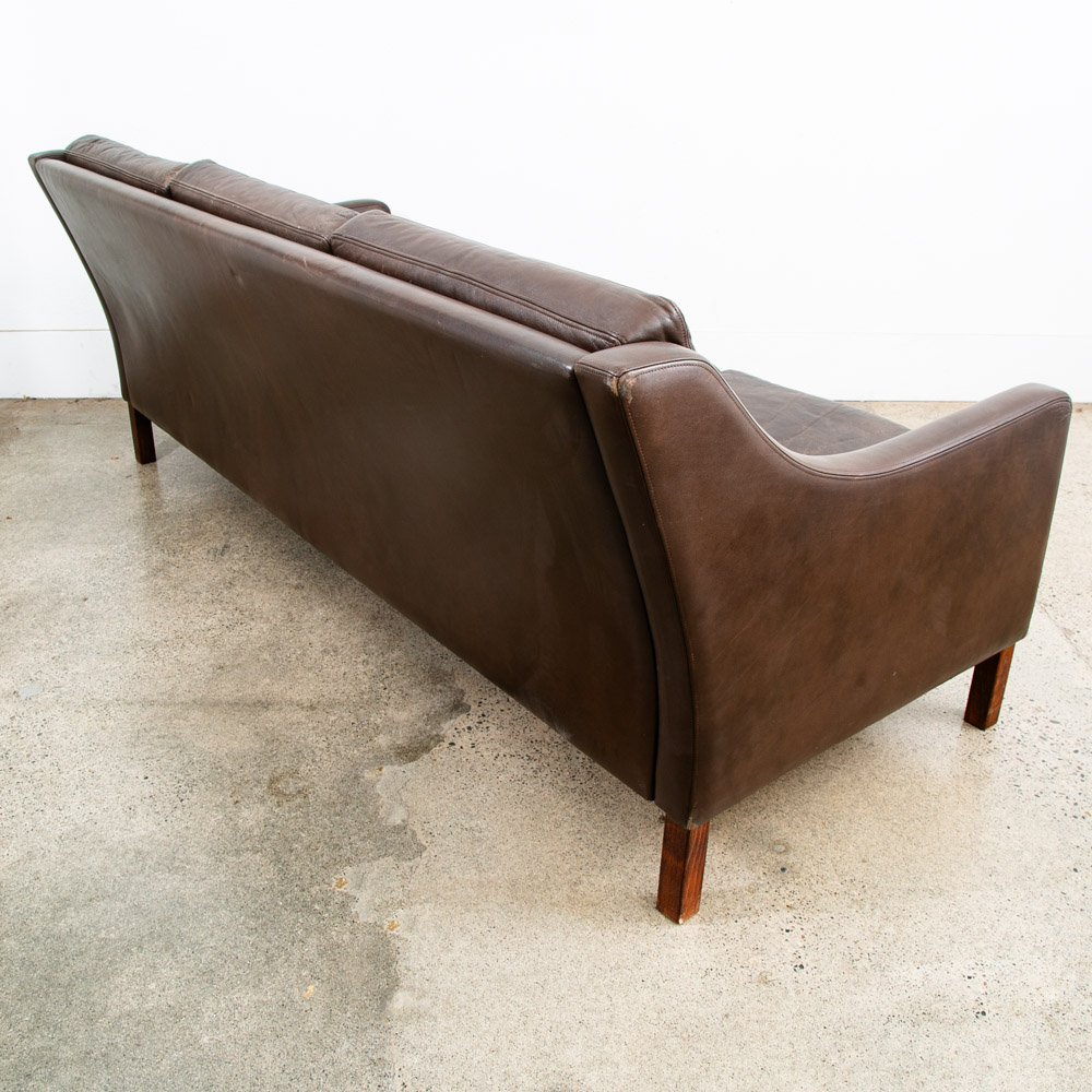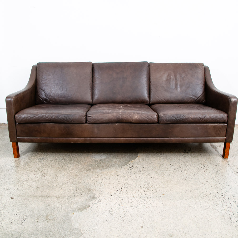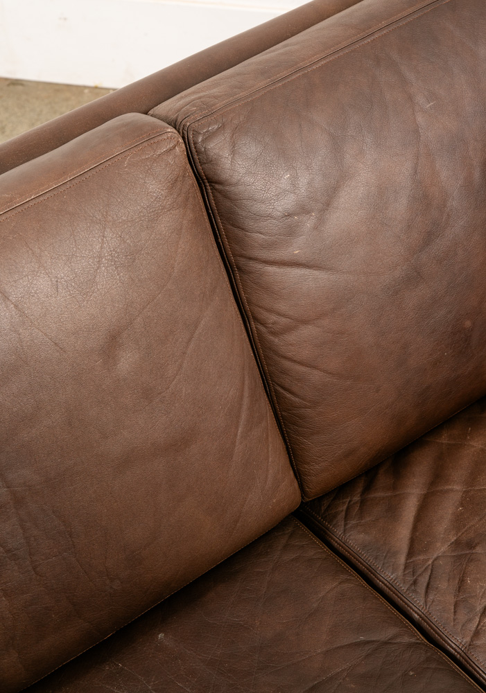Fantastic brown leather sofa recently imported directly from Denmark. The leather exhibits a nice lightly worn look. Leather is still soft and does not have any major cracks or crazing. This piece is somewhere you can rest after a long day. It is very comfortable and functional for everyday use and the leather is top quality. Great rustic brown color that plays well in any space! Please see all photos to ensure you know what you are buying. We include FREE SHIPPING in the listing price. Some exceptions apply, so please read the full shipping details below.