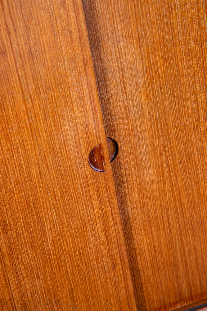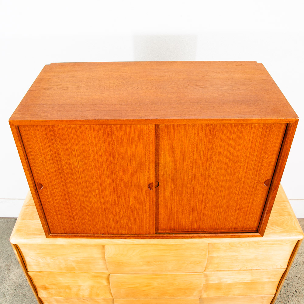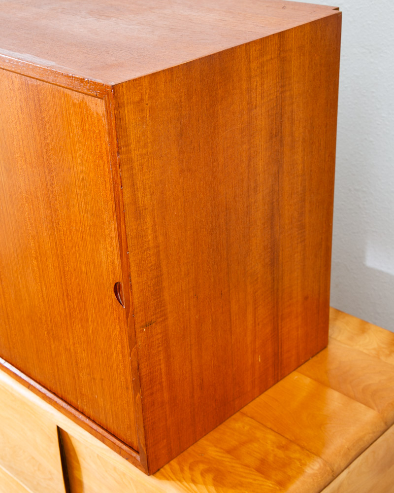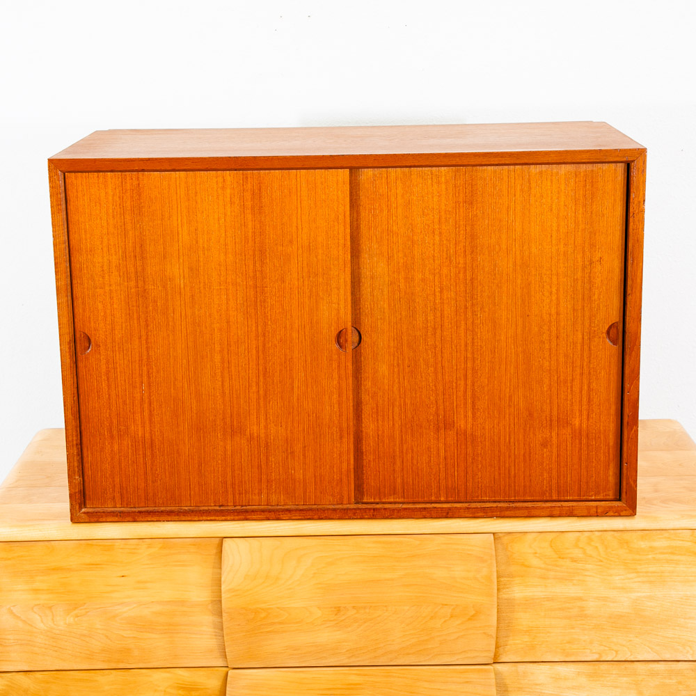 Danish modern teak Poul Cadovious "royal" wall unit section with adjustable shelving behind 2 sliding doors, made in Denmark. This is a single cabinet that can be added to your current system. Comes only with the cabinet and shelving. Please see all photos to ensure you know what you are buying. We include FREE SHIPPING in the listing price. Some exceptions apply, so please read the full shipping details below.
