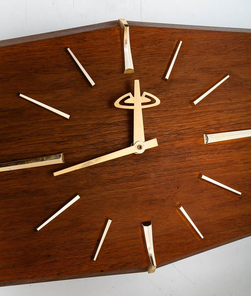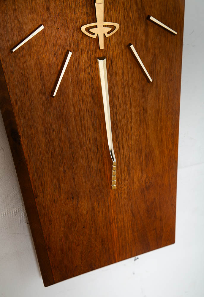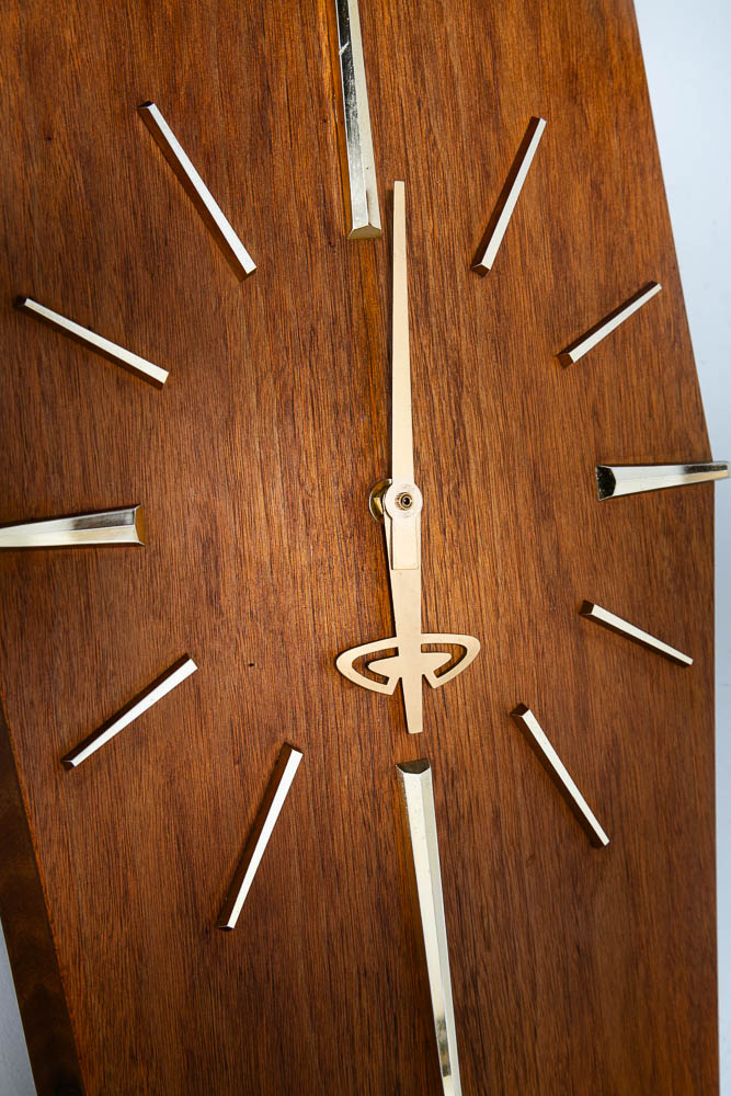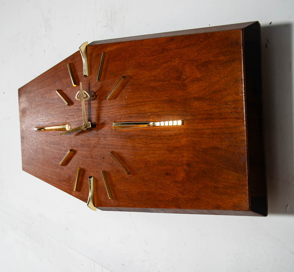 Mid Century Modern Clock Walnut Wall Wood Brass Gold Danish Vintage Working Mcm
