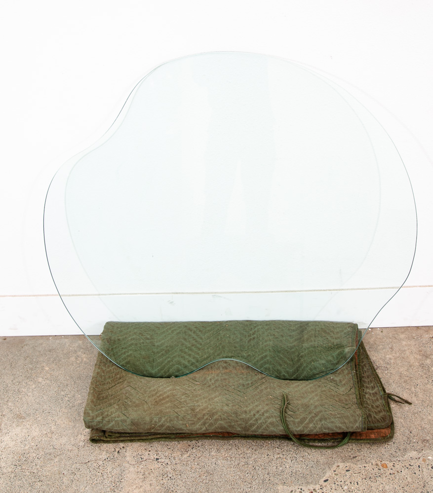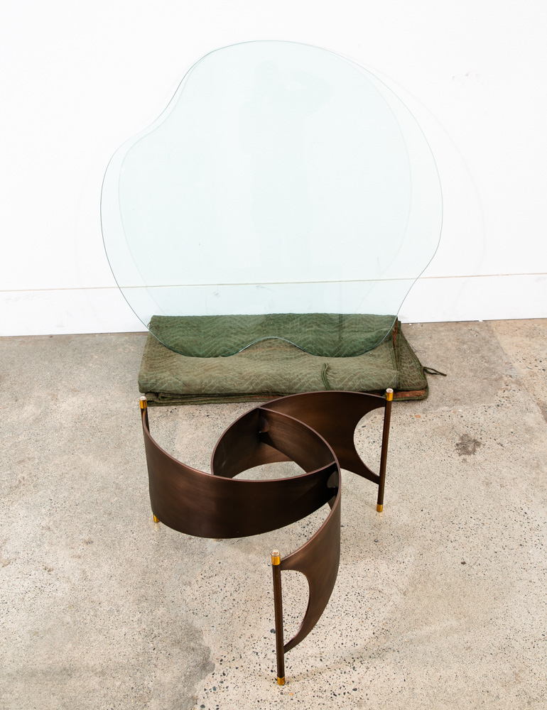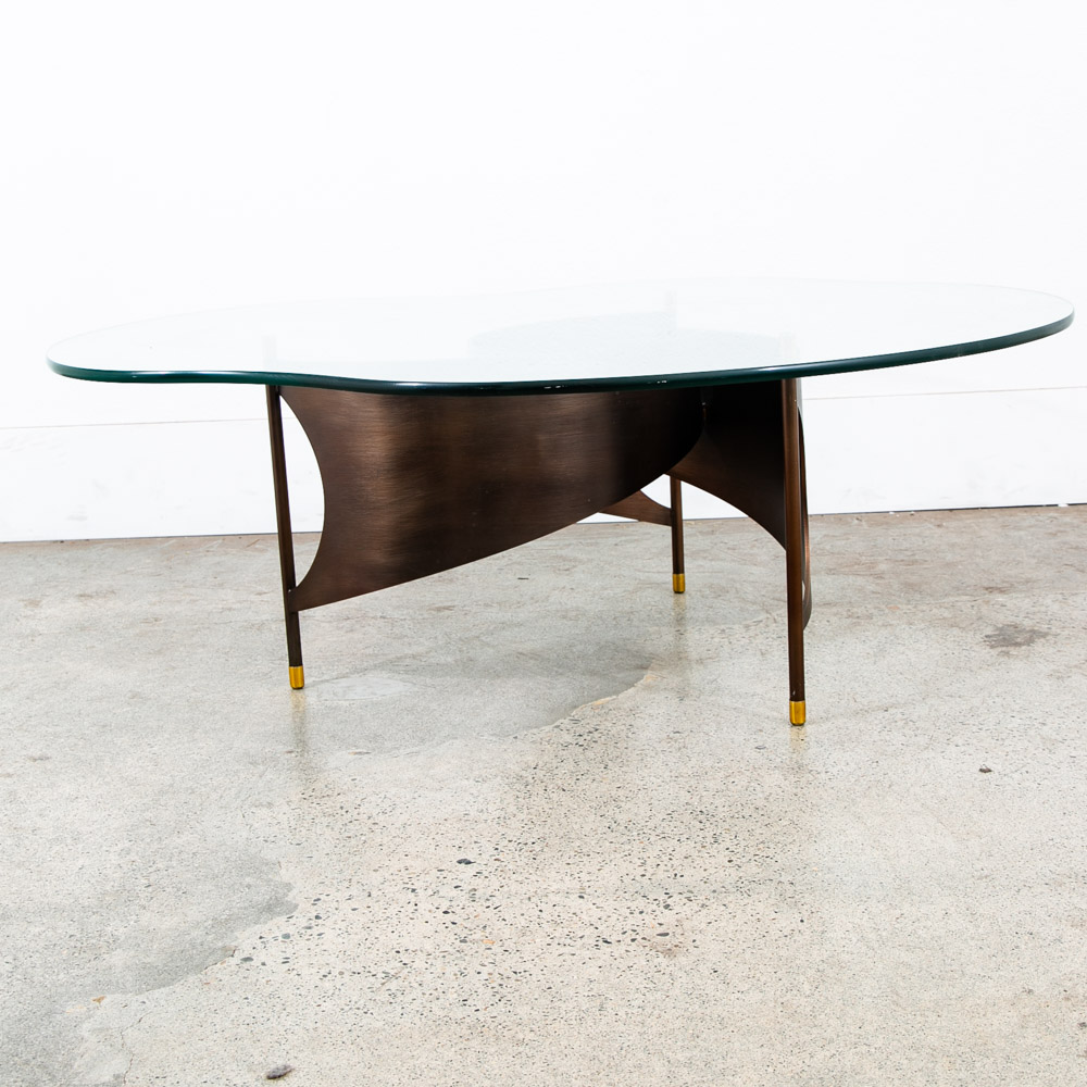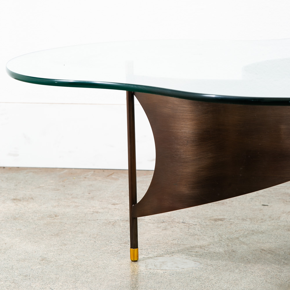 Very heavy metal and well made post modern coffee table with abstract shaped glass top. Unknown and unsigned American designer. made C late 70s. Please see all photos to ensure you know what you are buying. We include FREE SHIPPING in the listing price. Some exceptions apply, so please read the full shipping details below.