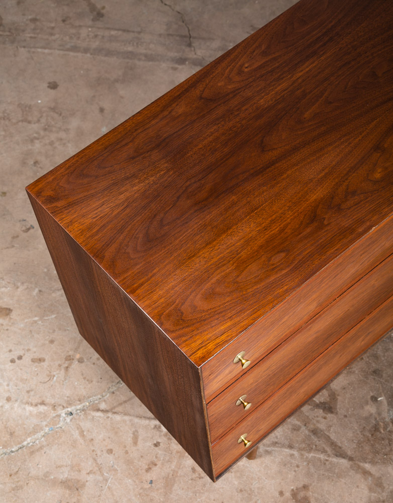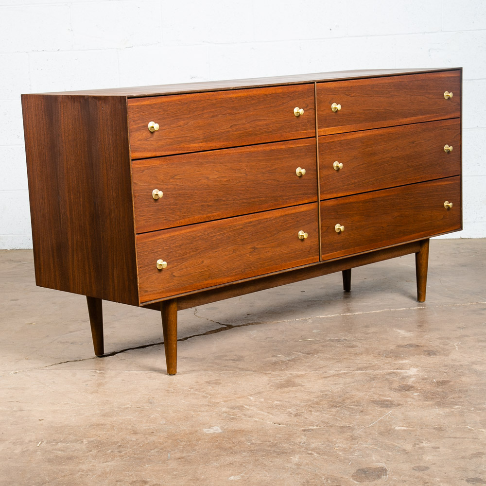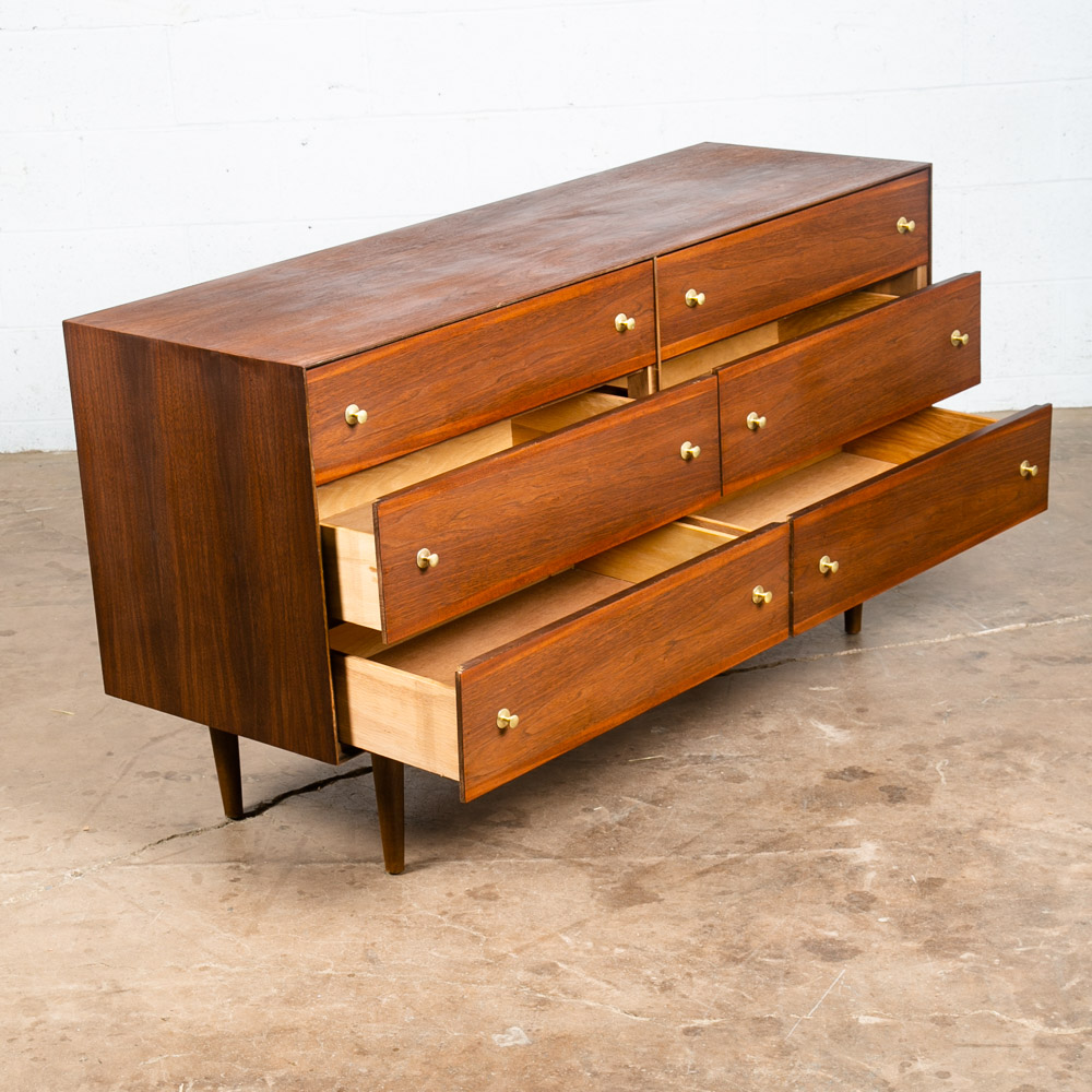 Fantastic Stanley 6 drawer dresser in walnut. We refinished this piece from top to bottom including the brass handles and it is ready for another 30 years of use. Breathtaking walnut construction. Signed within the top left drawerPlease see all photos to ensure you know what you are buying. We include FREE SHIPPING in the listing price. Some exceptions apply, so please read the full shipping details below.