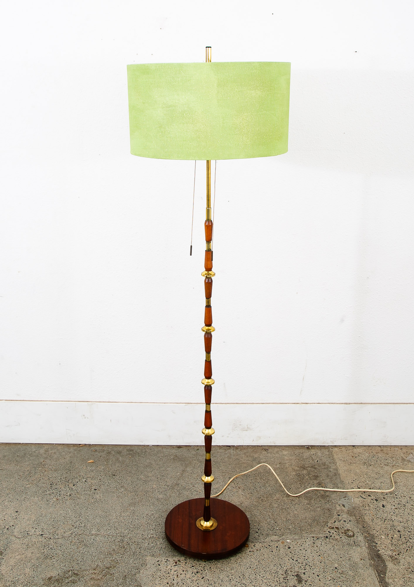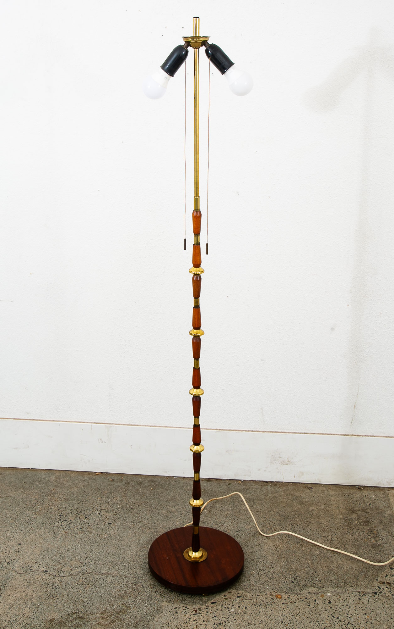 Mid Century Modern Danish Solid Teak Floor Lamp Stacked Brass MCM Denmark