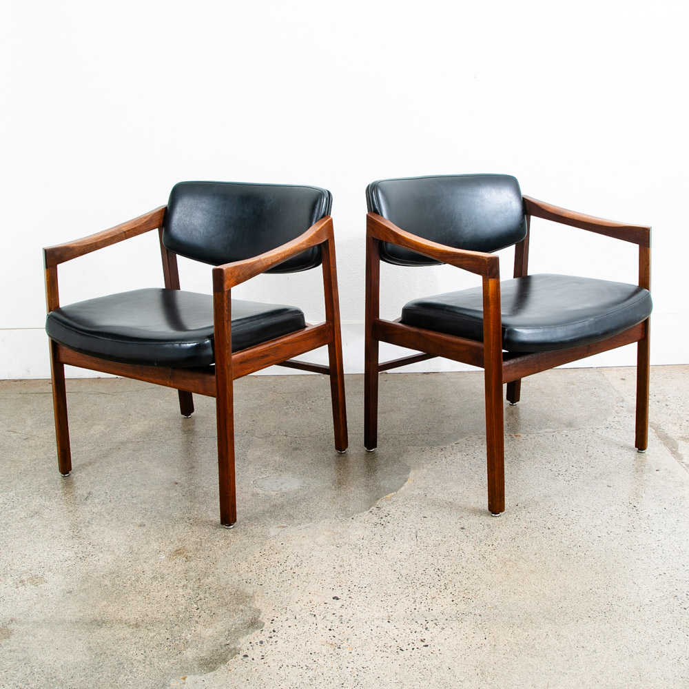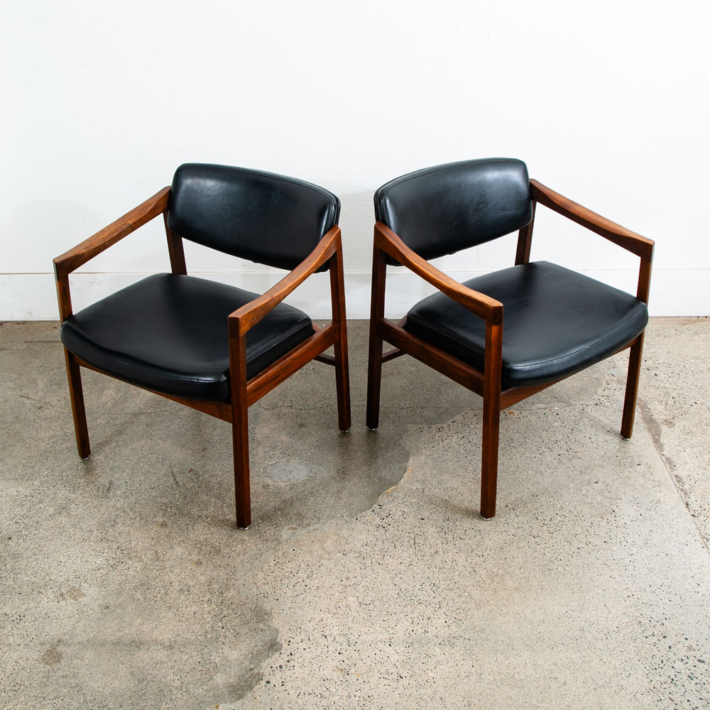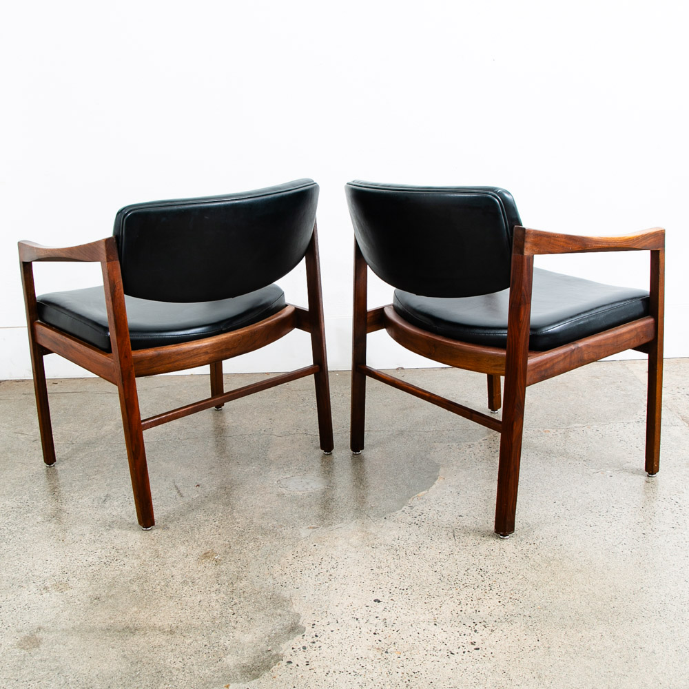 American made solid walnut armchairs in black. Great for an office or living space. Comes with 2 armchairs. Extremely high quality and well made. Unsigned. We include FREE SHIPPING in the listing price. Some exceptions apply, so please read the full shipping details below.