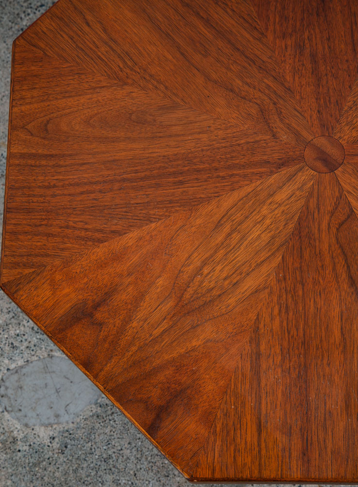 Iconic Lane Octagon end table in Walnut. Top surface shows a few marks, otherwise a very solid table. The table is marked beneath. We include FREE SHIPPING in the listing price. Some exceptions apply, so please read the full shipping details below.