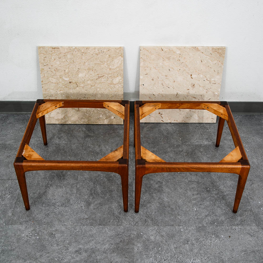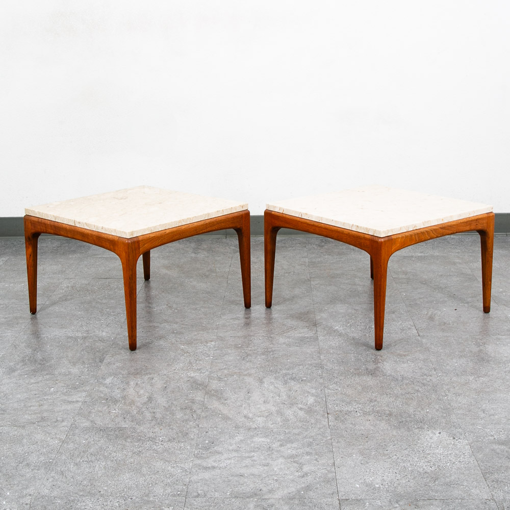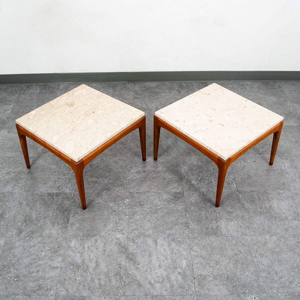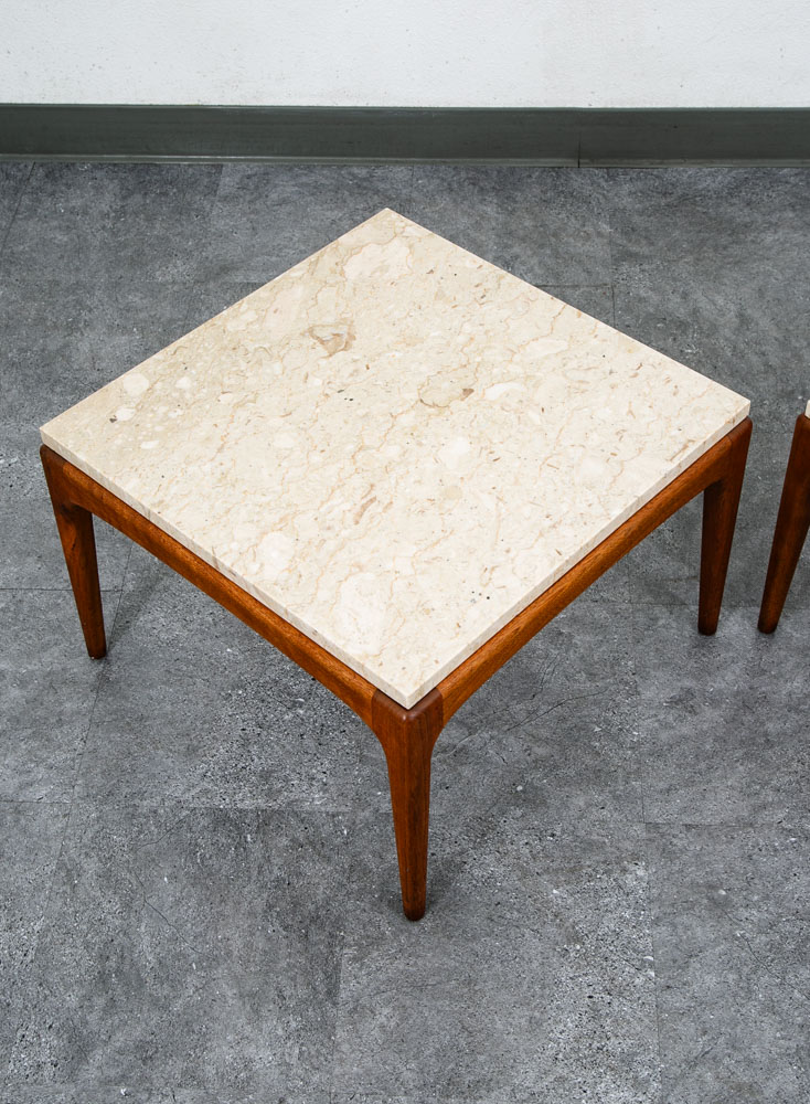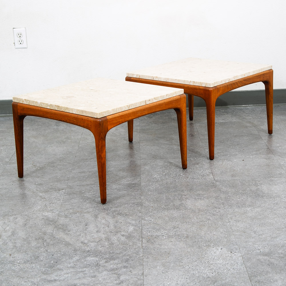 Mid Century Modern End Tables Lane Side Nightstand Set Pair Marble Square Mcm