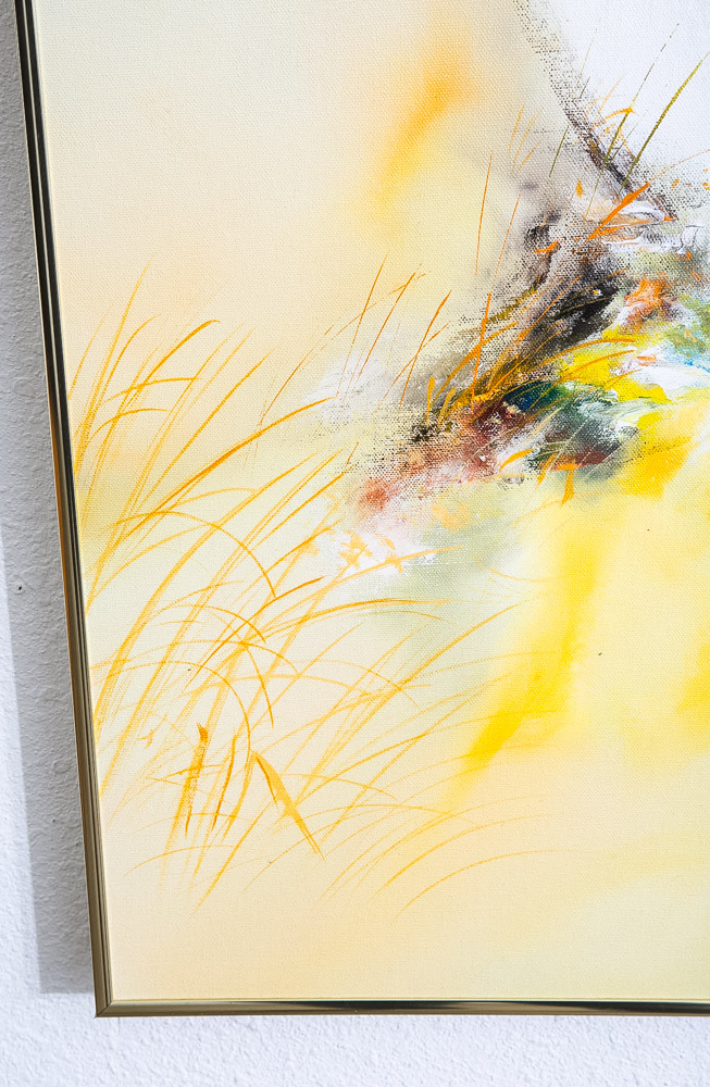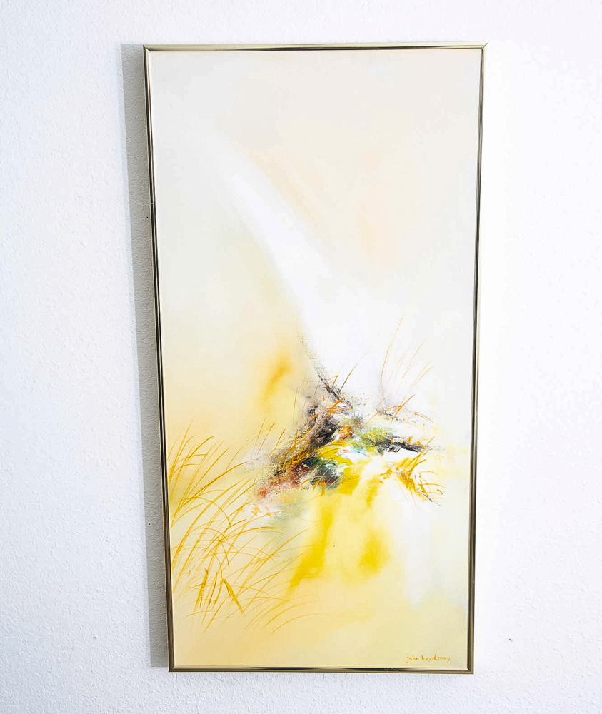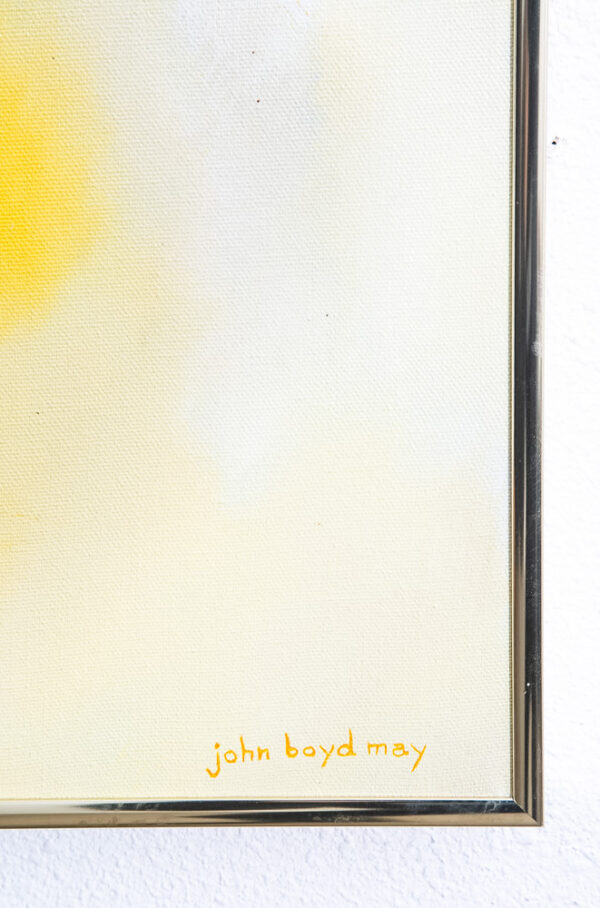 Outstanding medium sized modern abstract expressionist painting signed by John Boyd May. Colors throughout include white, yellow orange and black. We include FREE SHIPPING in the listing price. Some exceptions apply, so please read the full shipping details below.