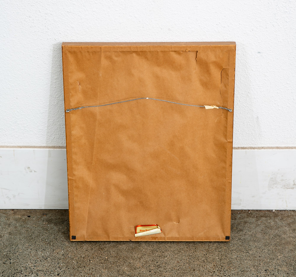 Condition report: Overall great condition. Signed on the front right corner and noted as a trial proof in graphite. The frame and canvas is all in great condition. The custom frame is worn and shows general wear. 9.5/10 condition. Outstanding example.