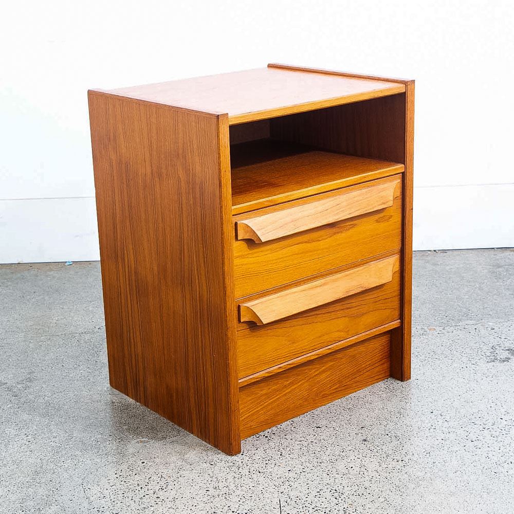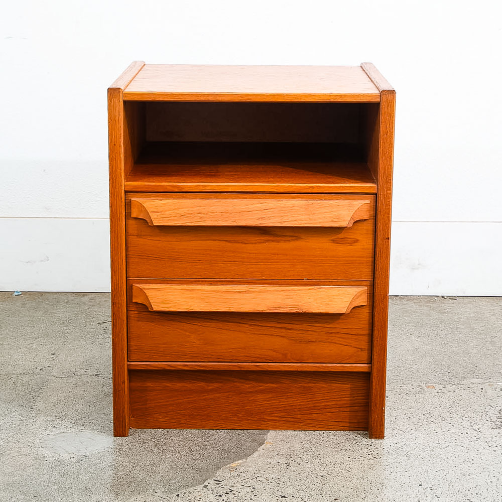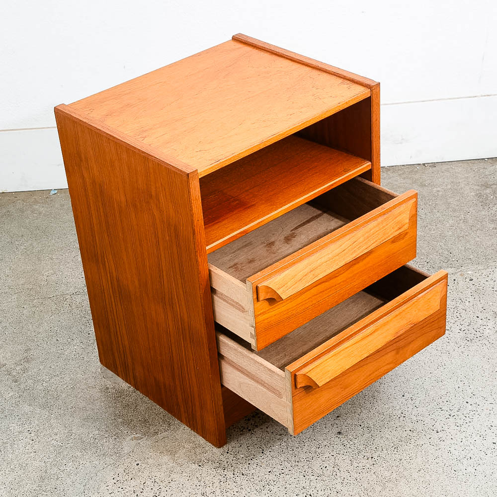 Danish teak wood 2 drawer nightstand. No issues to note. Sharp looking style. These nightstands tend to be harder to find and sell almost immediately as they come into the store. Sure to add style and class to any room or space. We include FREE SHIPPING in the listing price. Some exceptions apply, so please read the full shipping details below.