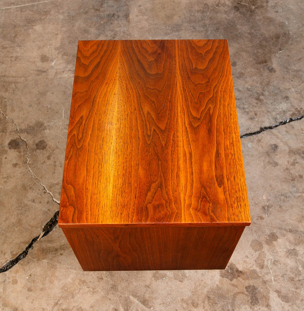 Unique single nightstand / end table in walnut. Comes with single drawer and storage space. Restored throughout. The rest of the piece comes in a beautiful walnut. Great in a bedroom or in a living room. So many options. We include FREE SHIPPING in the listing price. Some exceptions apply, so please read the full shipping details below.