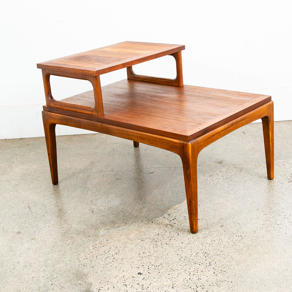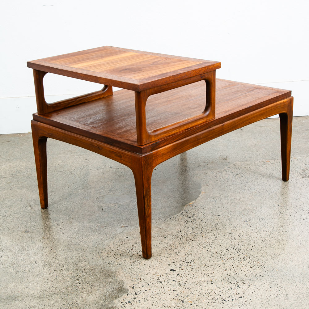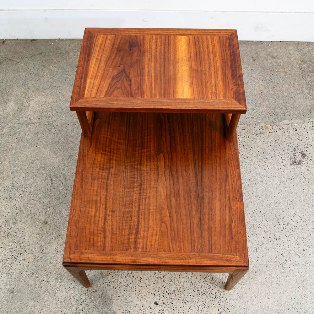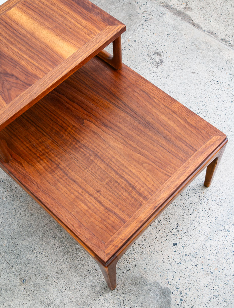 Lane step up end table, A classic American mid century modern design. Comes in solid walnut and walnut veneer . Part of the Lane Rhythm series. Great timeless design throughout that will surely work in almost any setting. Please see all photos to ensure you know what you are buying. We include FREE SHIPPING in the listing price. Some exceptions apply, so please read the full shipping details below.