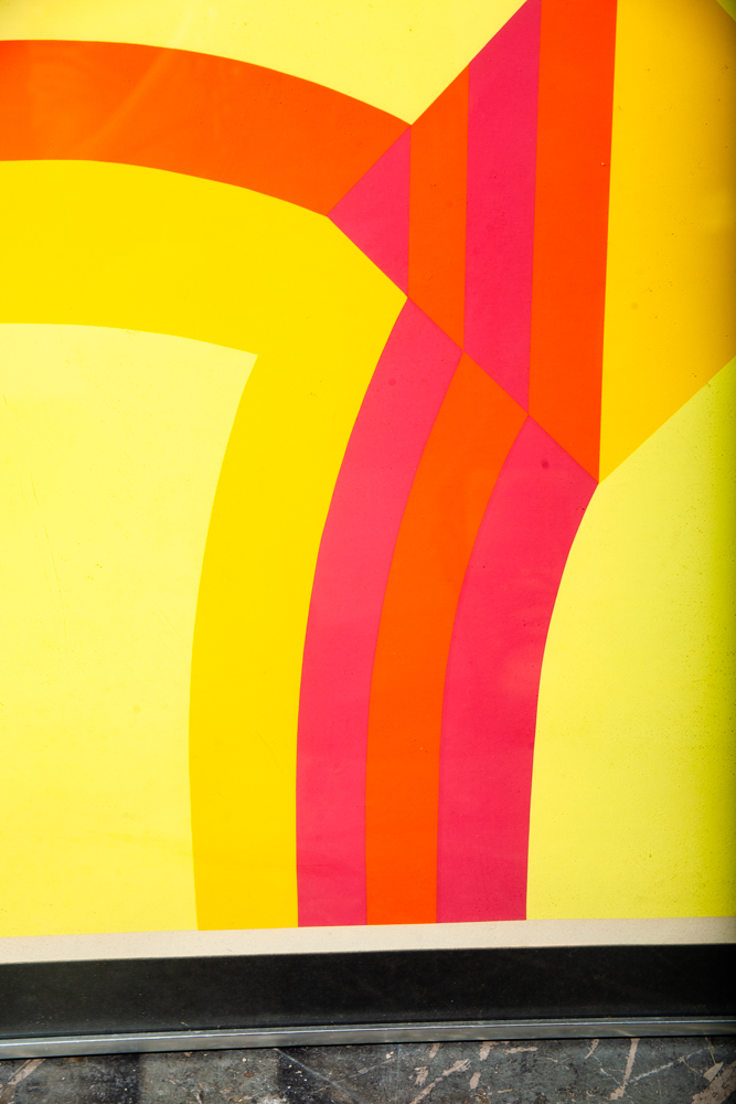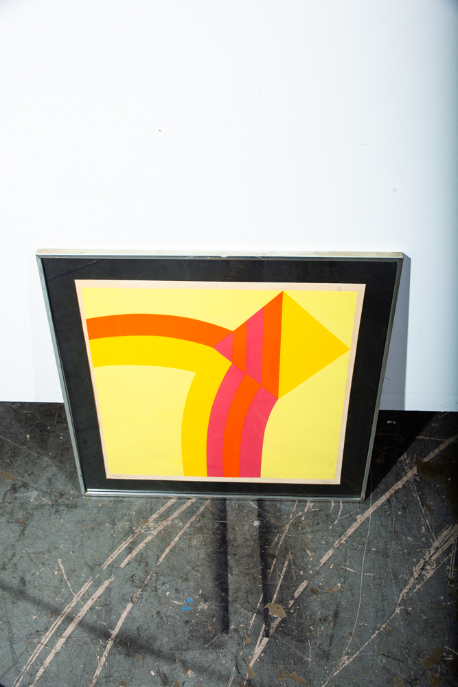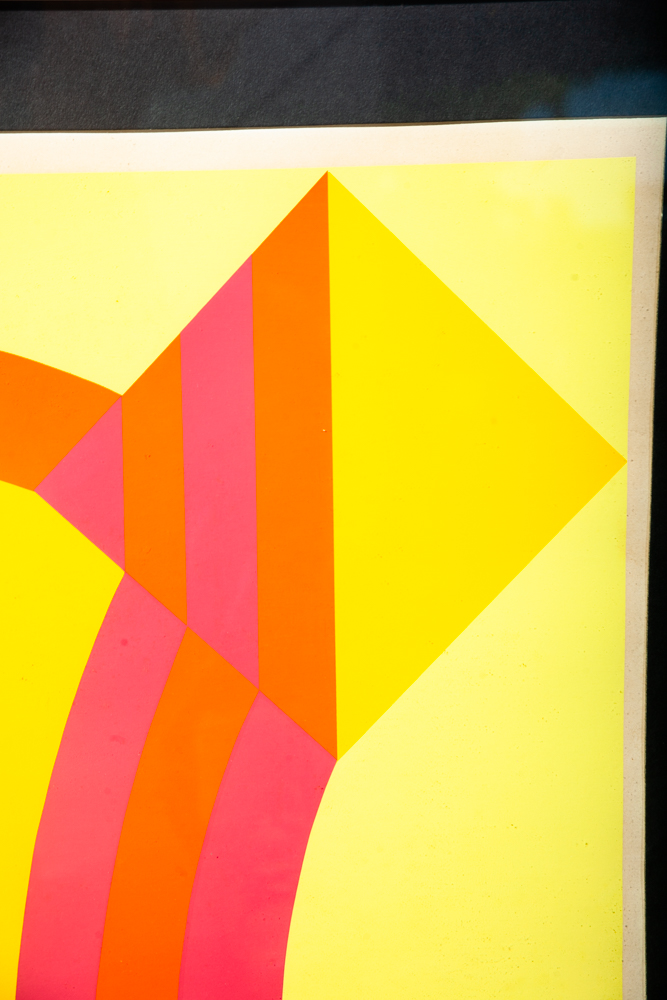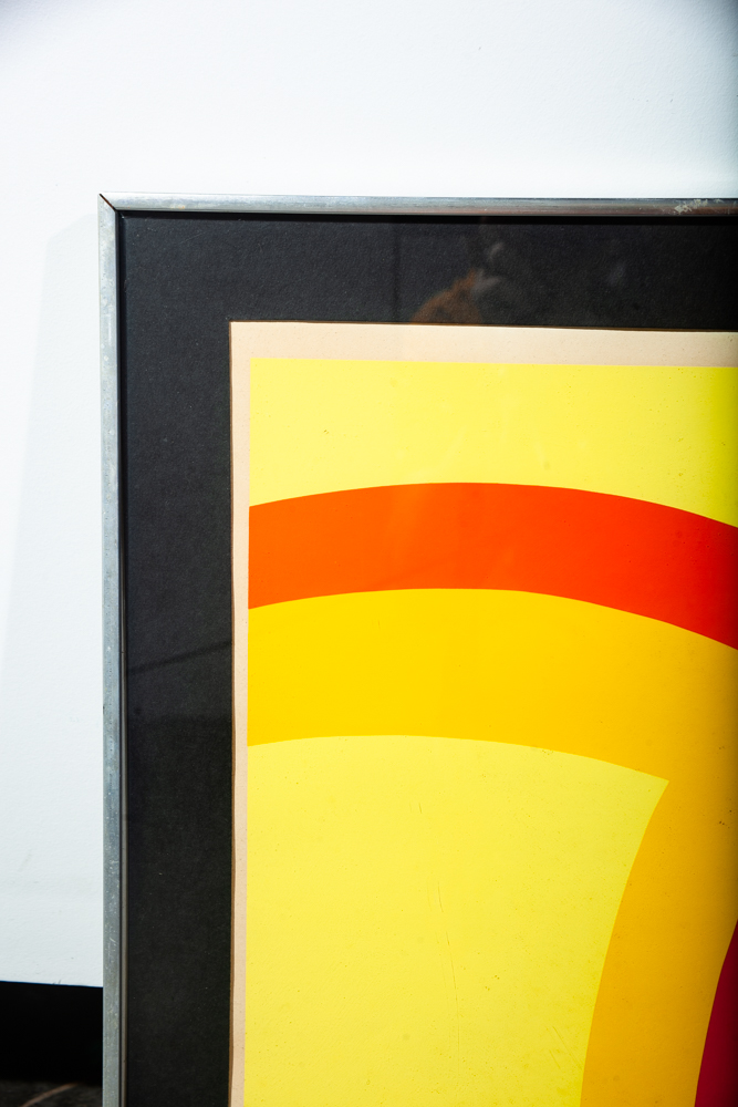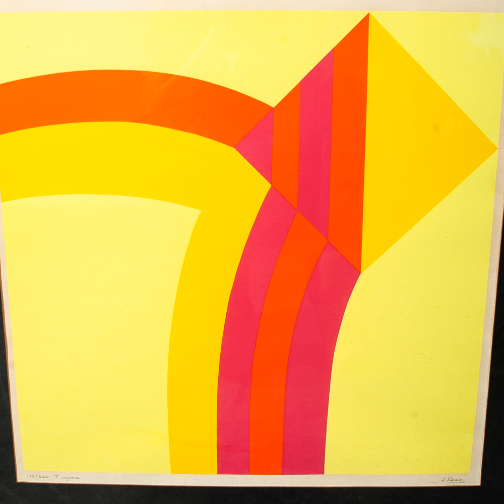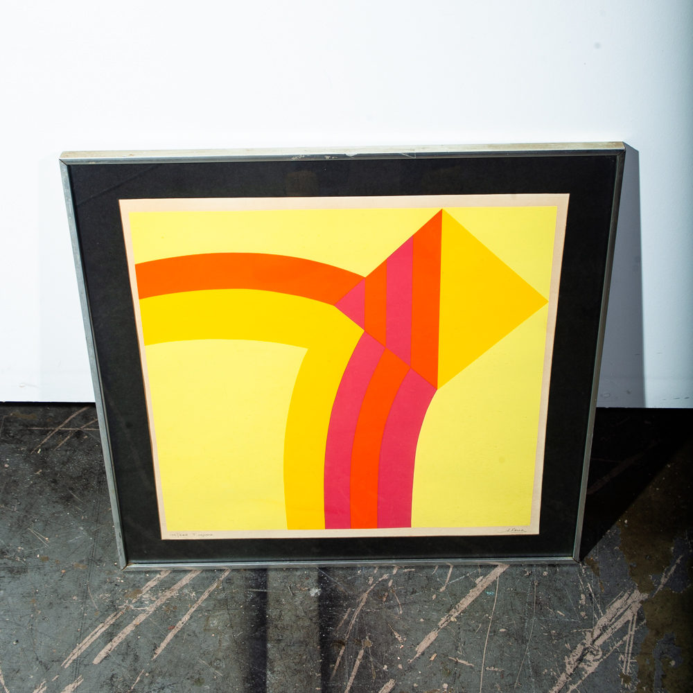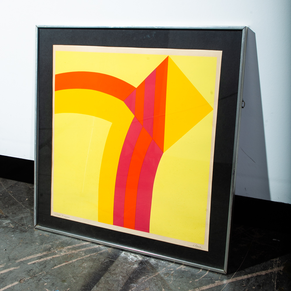 Mid Century Modern Original Art Print Lithograph Susan Perea Abstract Geometric Yellow Orange Red