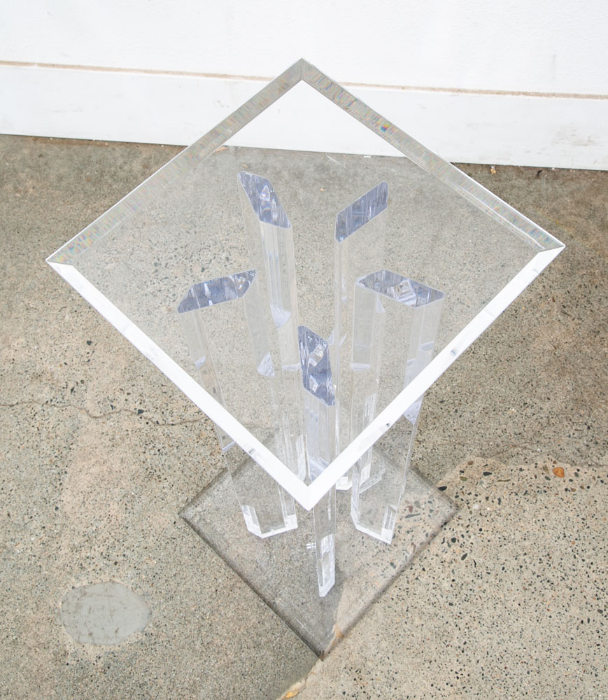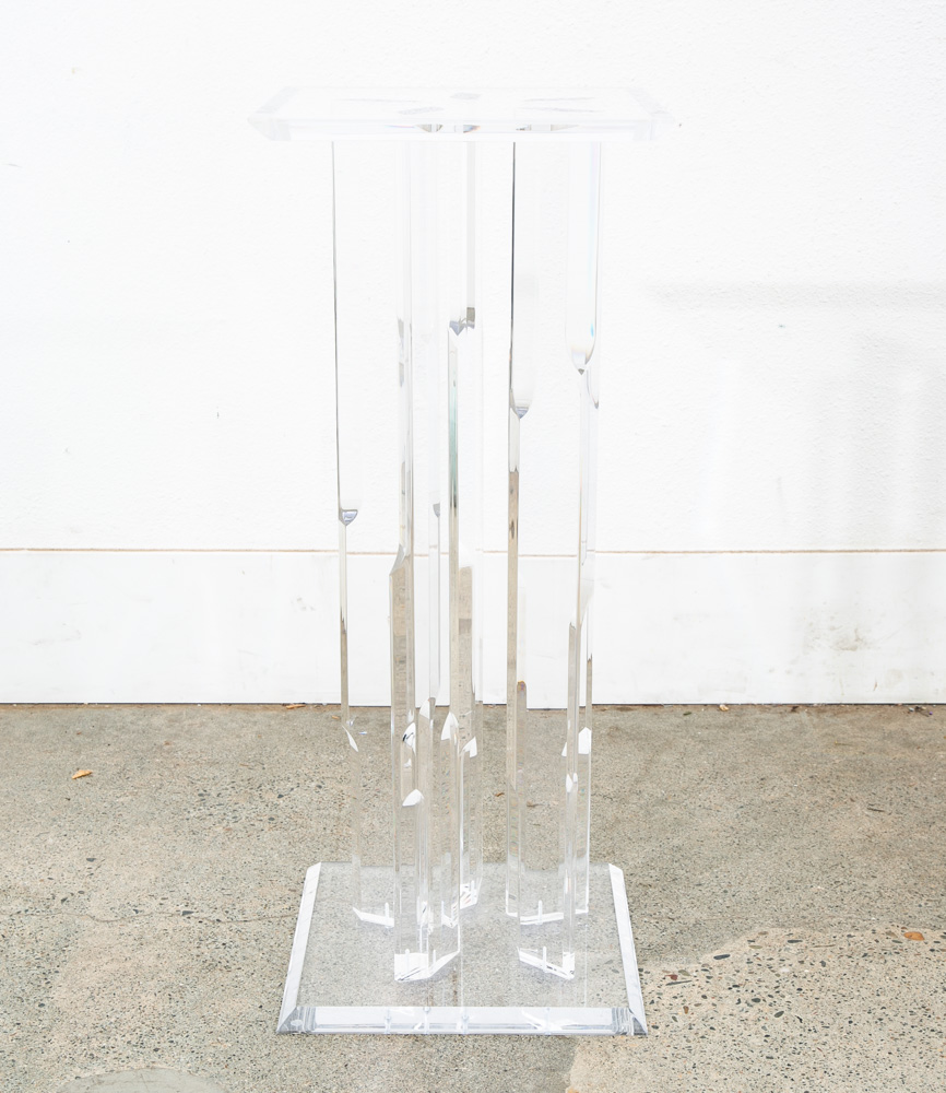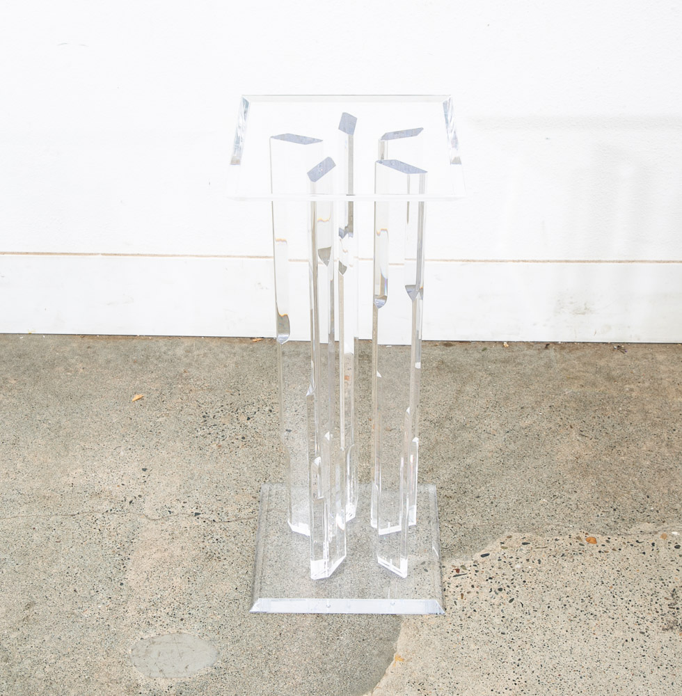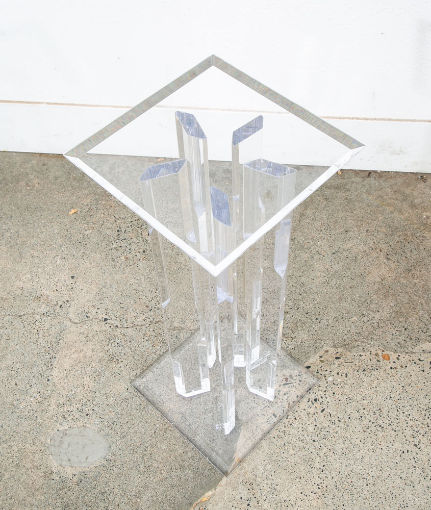 Unique Lucite pedestal. Great for art or display. Unique and from the 1970s. We don't see too many of these. Comes with pedestal only. Please see all photos to ensure you know what you are buying. We include FREE SHIPPING in the listing price. Some exceptions apply, so please read the full shipping details below.