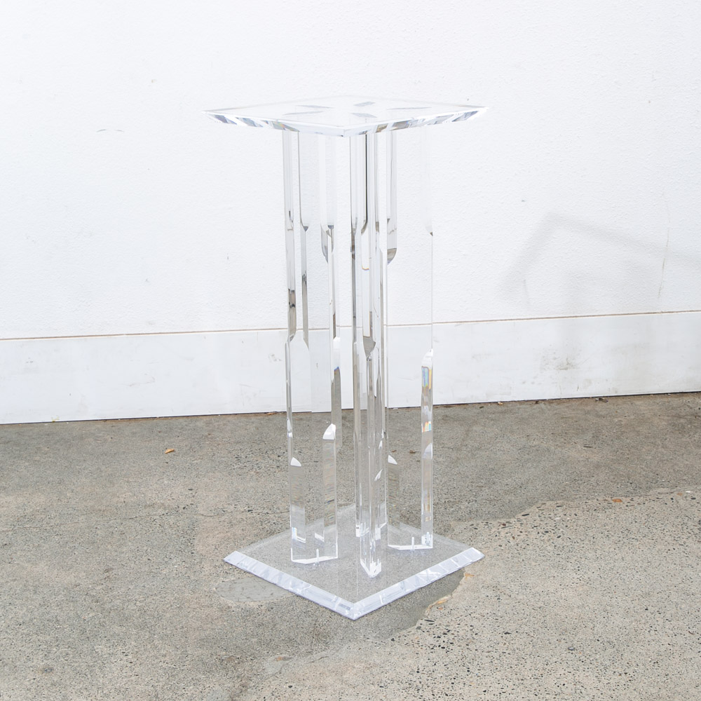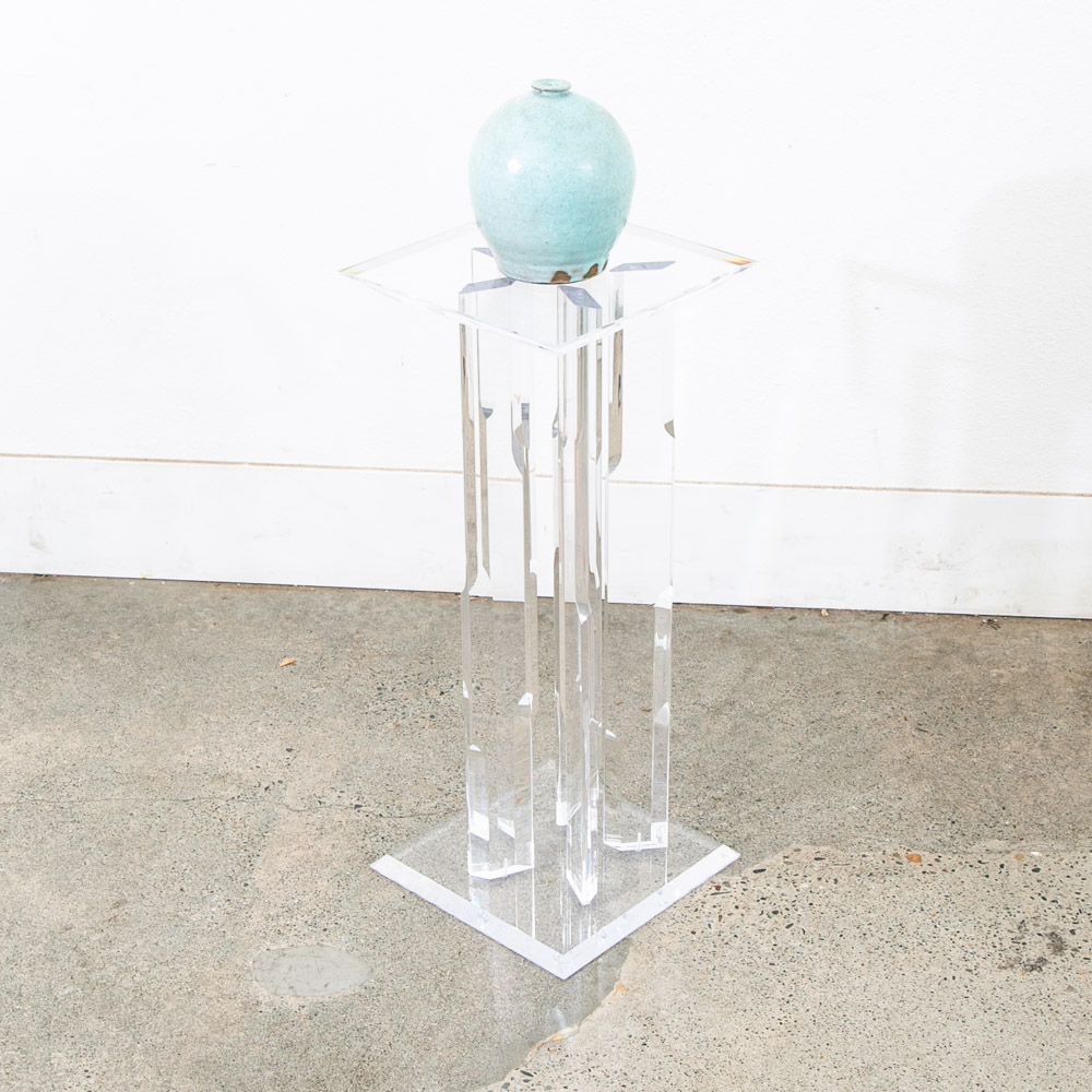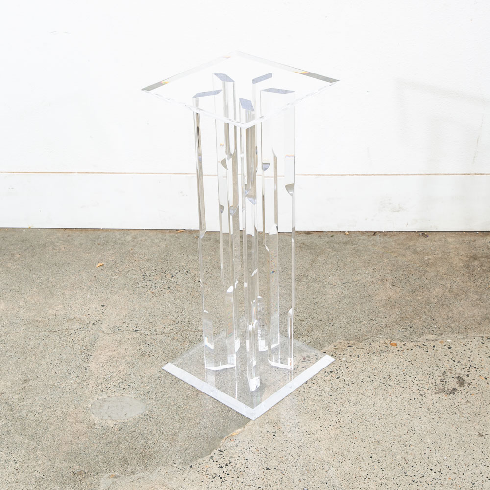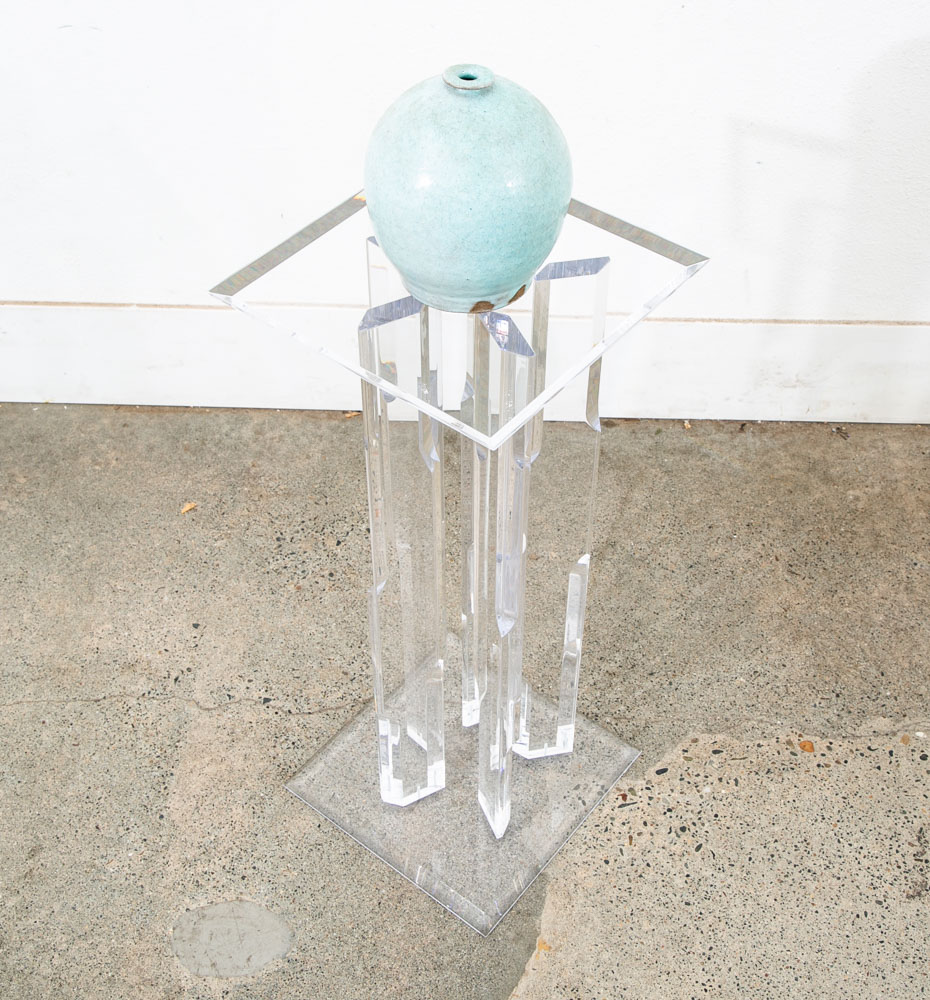 Unique Lucite pedestal. Great for art or display. Unique and from the 1970s. We don't see too many of these. Comes with pedestal only. Please see all photos to ensure you know what you are buying. We include FREE SHIPPING in the listing price. Some exceptions apply, so please read the full shipping details below.