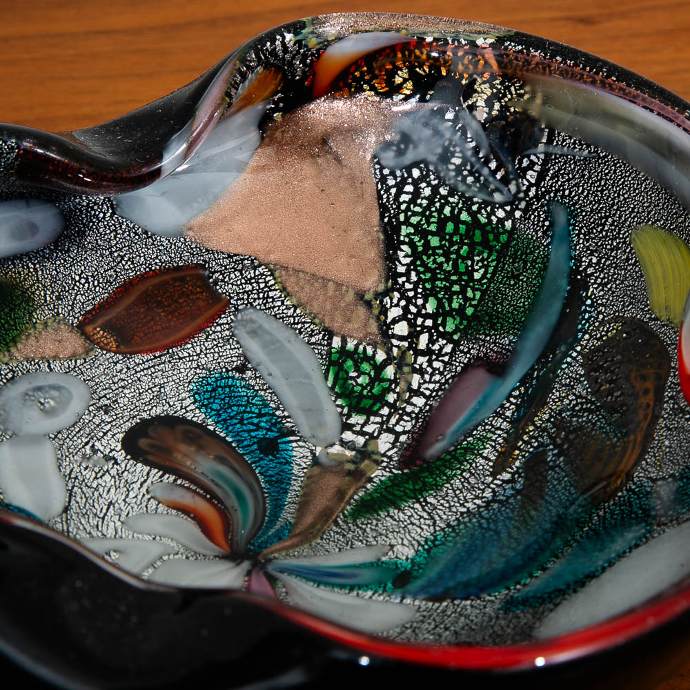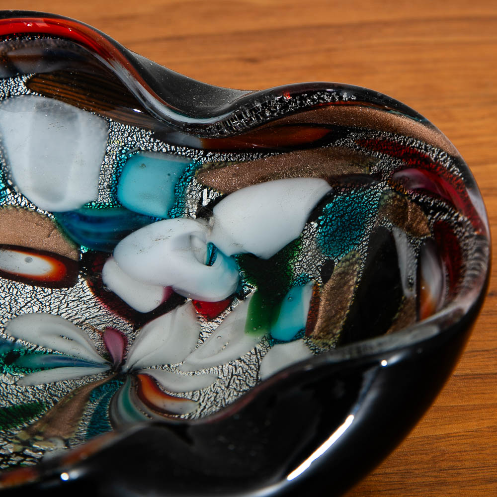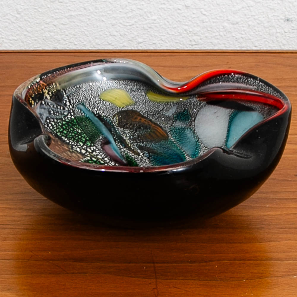 Multicolored glazed art glass ash tray / catch all with abstract design. Mid century modern style square ash tray. C 1970 Please see all photos to ensure you know what you are buying. FREE SHIPPING included in the listing price to your home or space.