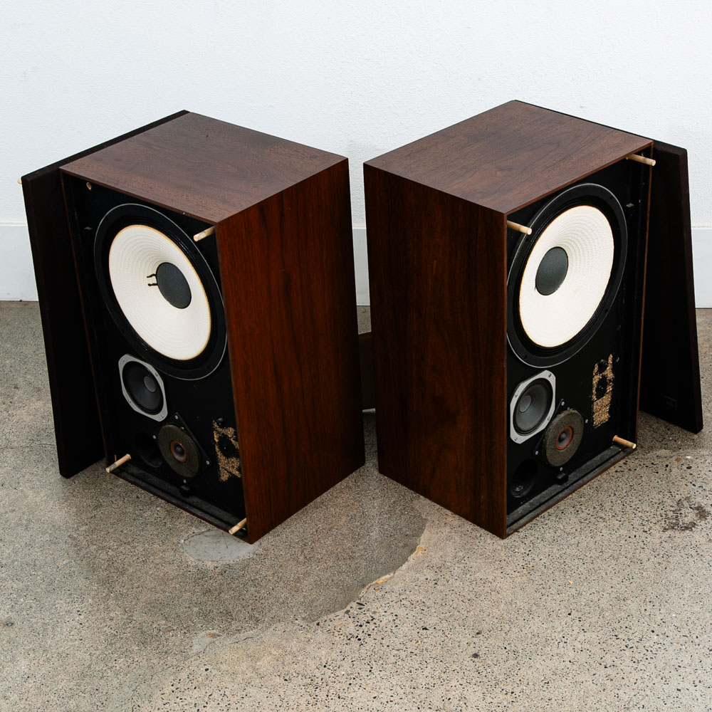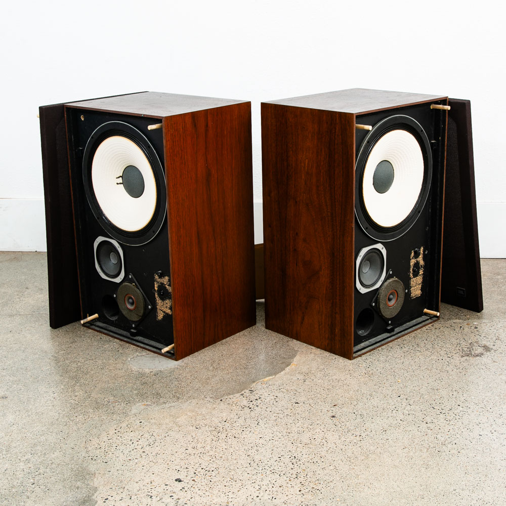 Near mint condition set of JBL L88 Plus in oiled walnut. We obtained these from the original owner. These speakers were kept in amazing condition and were only lightly used their whole life. The 5 inch midrange woofer kit was added later making these even greater and more unique.