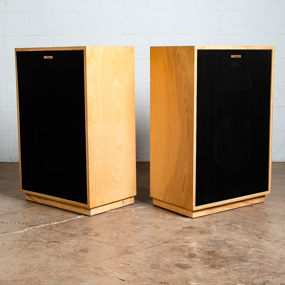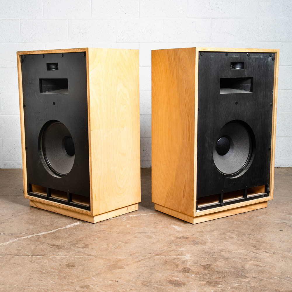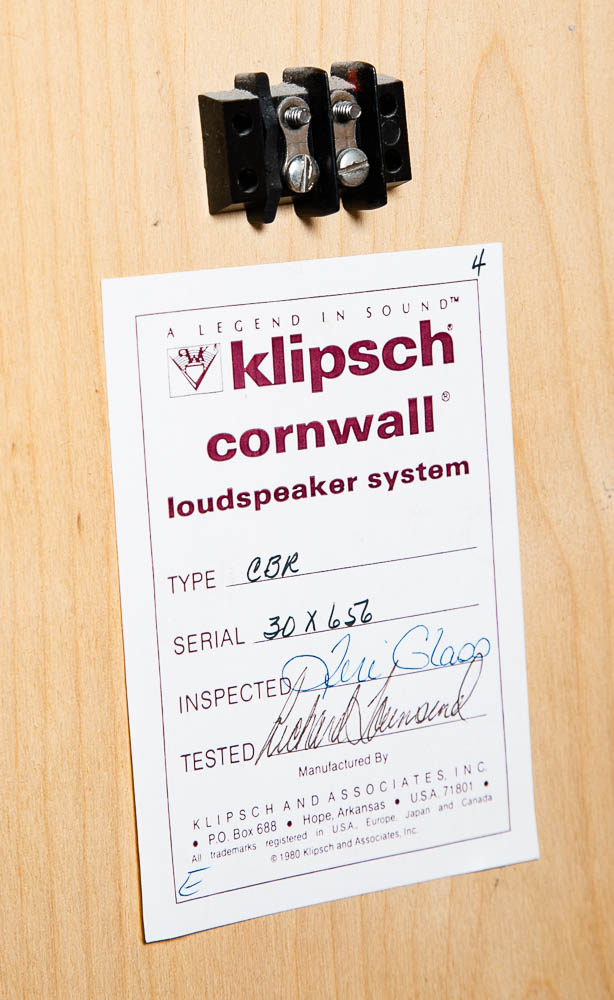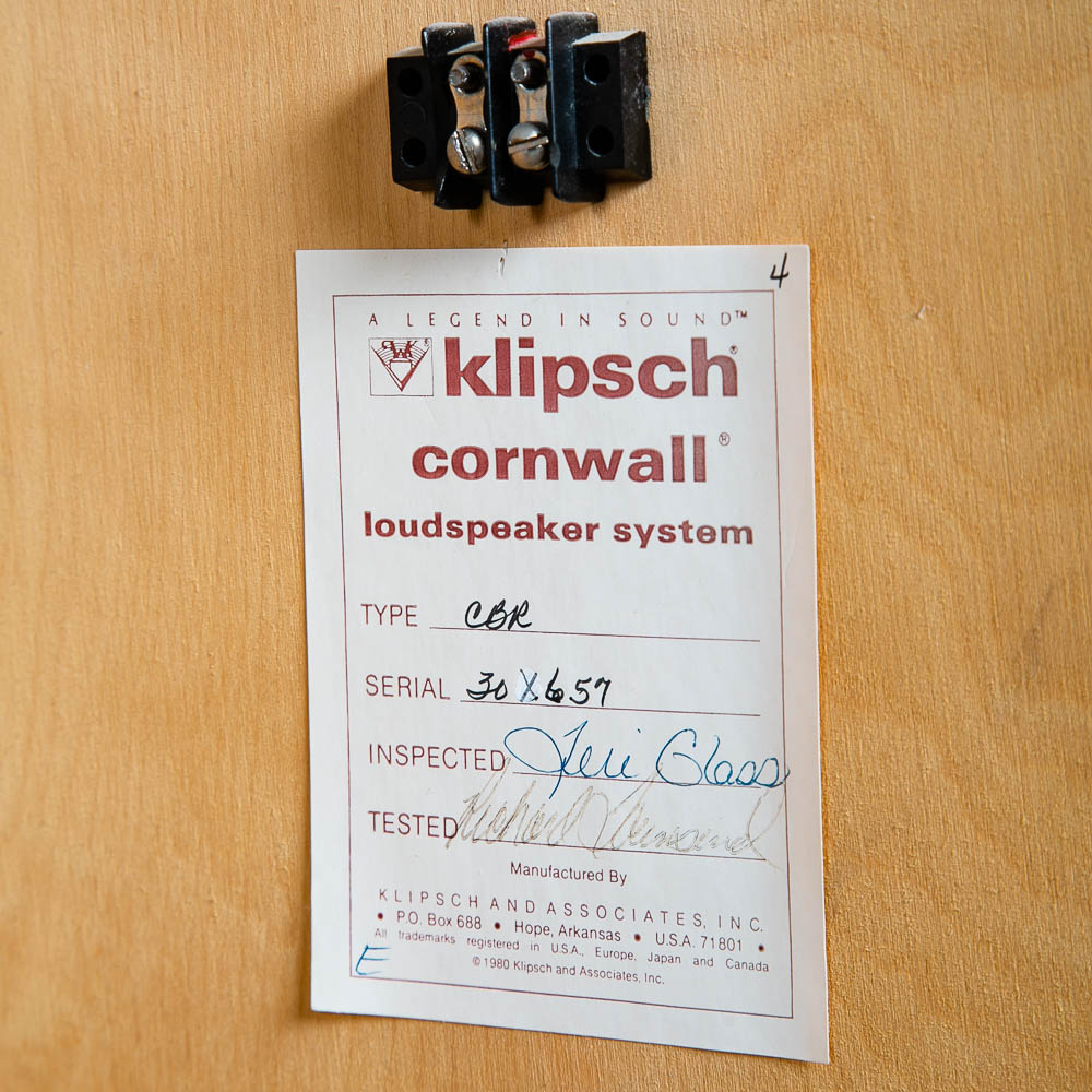 Set of Klipsch Cornwall CBR speakers from 1982, likely the 1.5's. Each one is marked and stamped on the back. The serial numbers are 30X657 / 30X656. We have done some minor testing and they produce sound and sound good but we are going to leave the further testing to the audiophiles. The cabinets are raw veneer and are ready to be finished in your preference. We cannot guarantee or warranty these in any way as they are being sold AS-IS and how we found them. A great set for the right collector. The full set ships free to your door. Please see all photos to ensure you know what you are buying. We include FREE SHIPPING in the listing price. Some exceptions apply, so please read the full shipping details below.