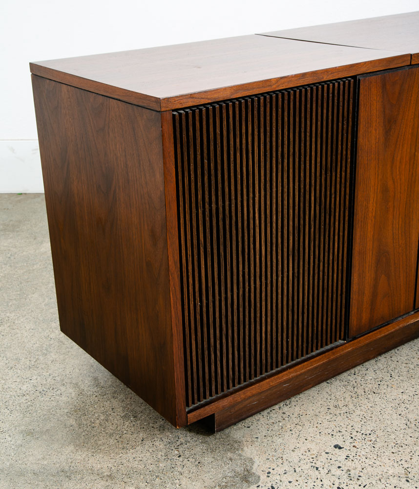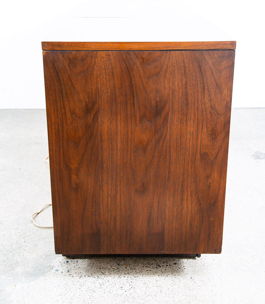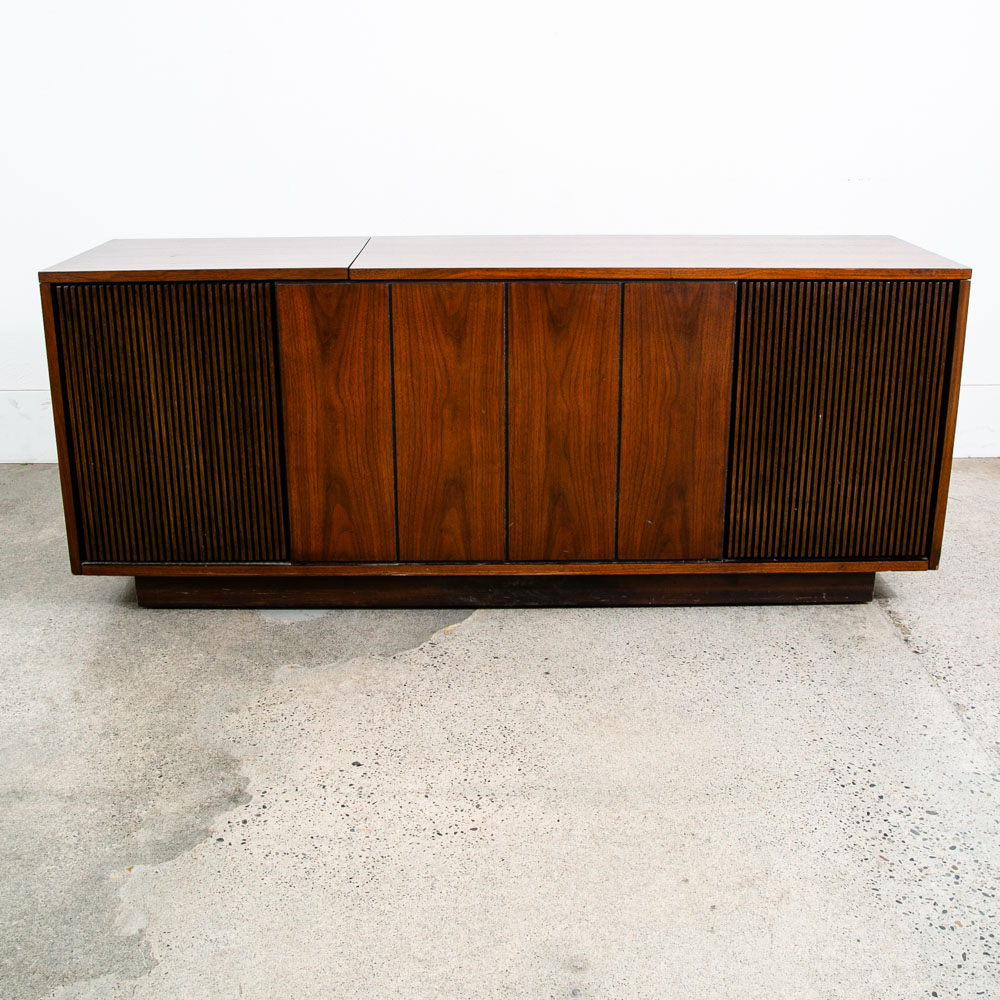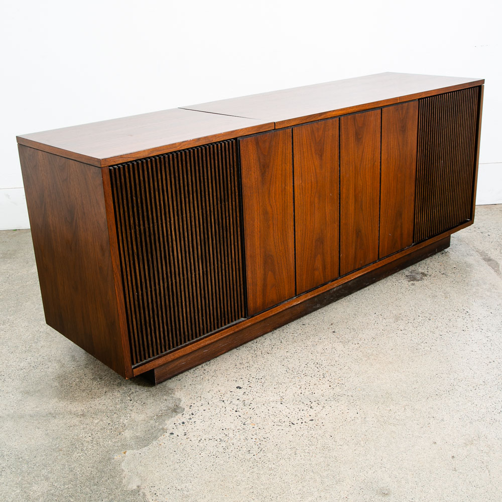 Beautiful Philco walnut stereo console that includes stereo FM tuner, 8 track player and record player. The unit is solid state and generally turns on and off but will likely need to be serviced to work properly and as intended. The unit opens on top on the right side. The center area offers LP or media storage. Please see all photos to ensure you know what you are buying. We include FREE SHIPPING in the listing price. Some exceptions apply, so please read the full shipping details below.