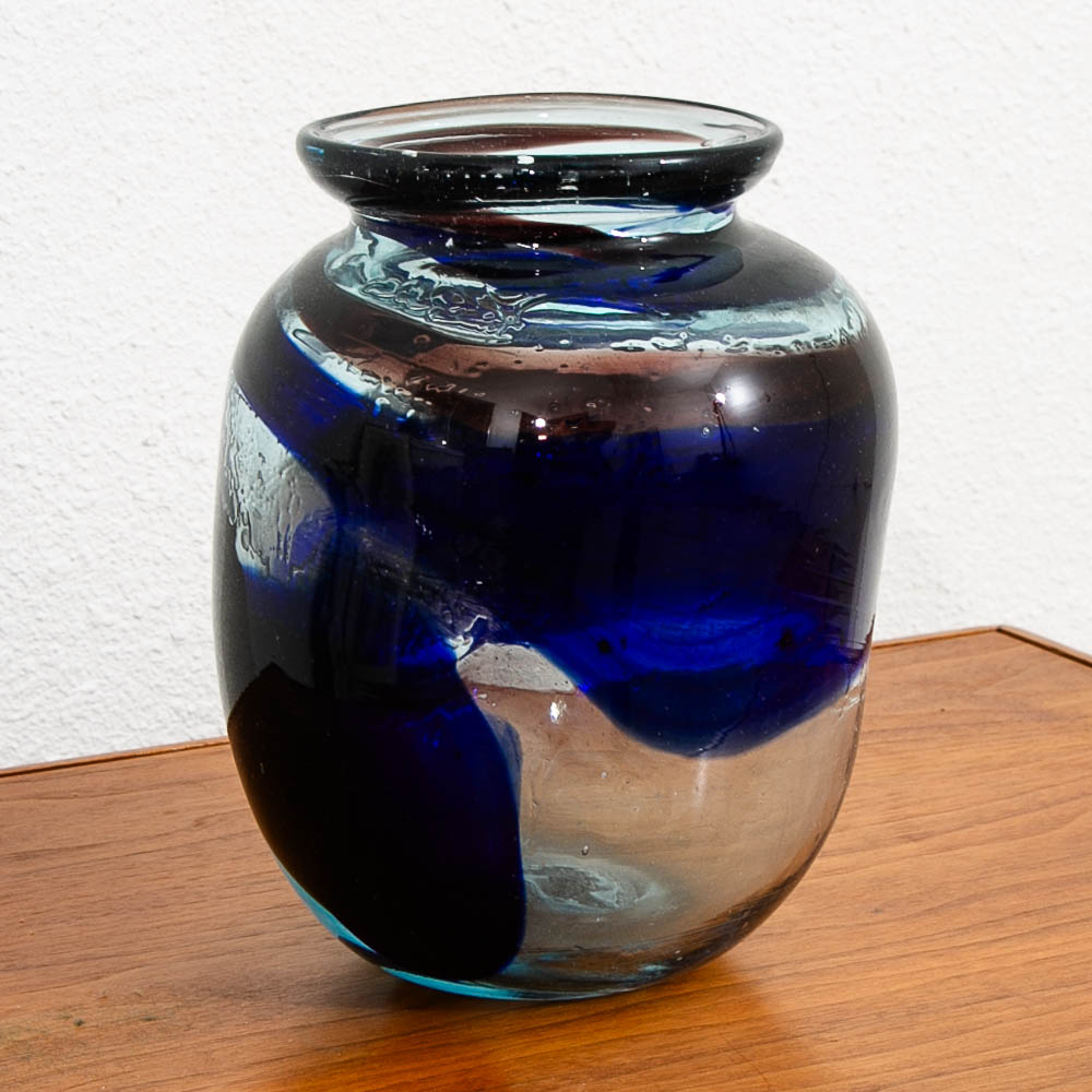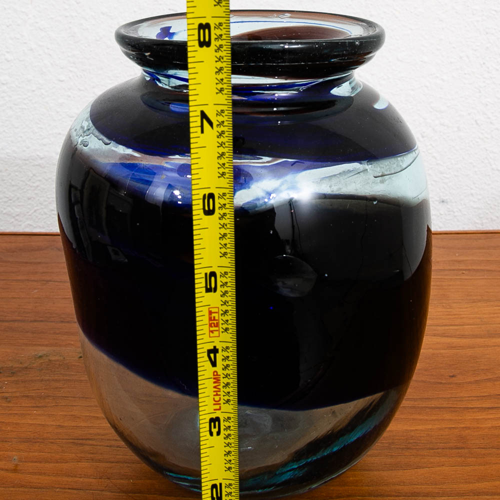 Unique hand blown glass vase Circa 1970. It comes in dark blue color with unique clear glass designed throughout. We include FREE SHIPPING in the listing price. Some exceptions apply, so please read the full shipping details below.