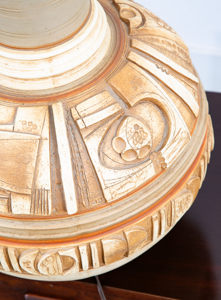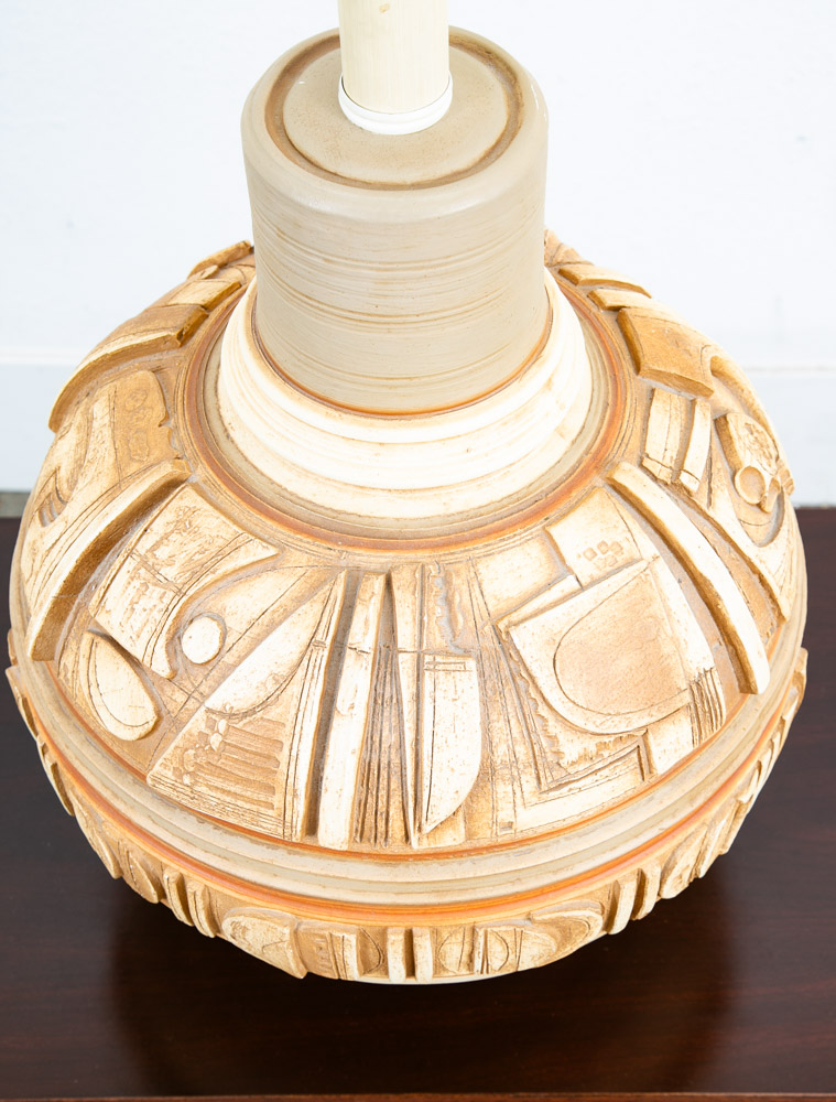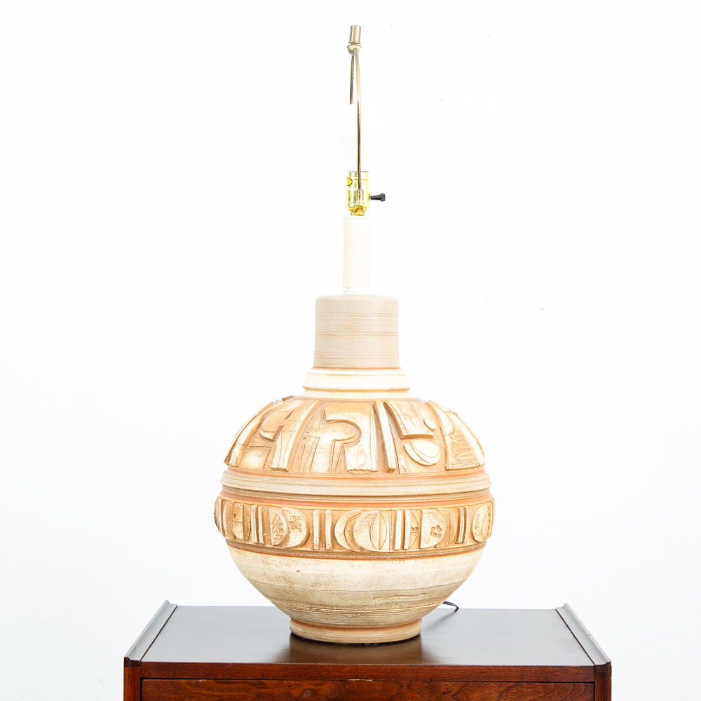 Round textured studio ceramic lamp by Casuals of California. Signed at the base of the lamp. Please see all photos to ensure you know what you are buying. We include FREE SHIPPING in the listing price. Some exceptions apply, so please read the full shipping details below.