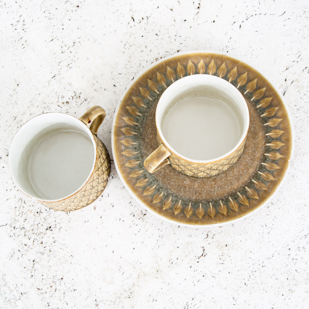 Pair of tea cups and one saucer dish by Jens Quistgaard. some wear to be seen throughout. Please see all photos to ensure you know what you are buying. We include FREE SHIPPING in the listing price. Some exceptions apply, so please read the full shipping details below.