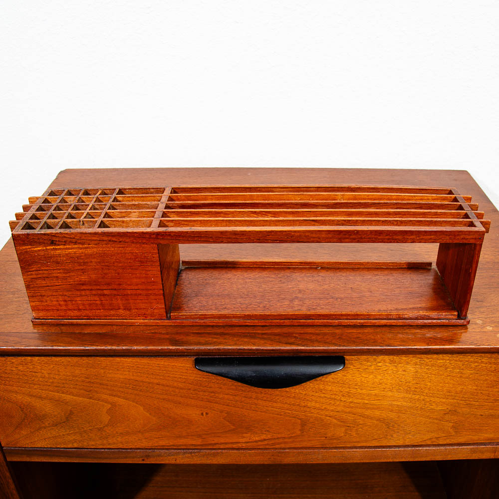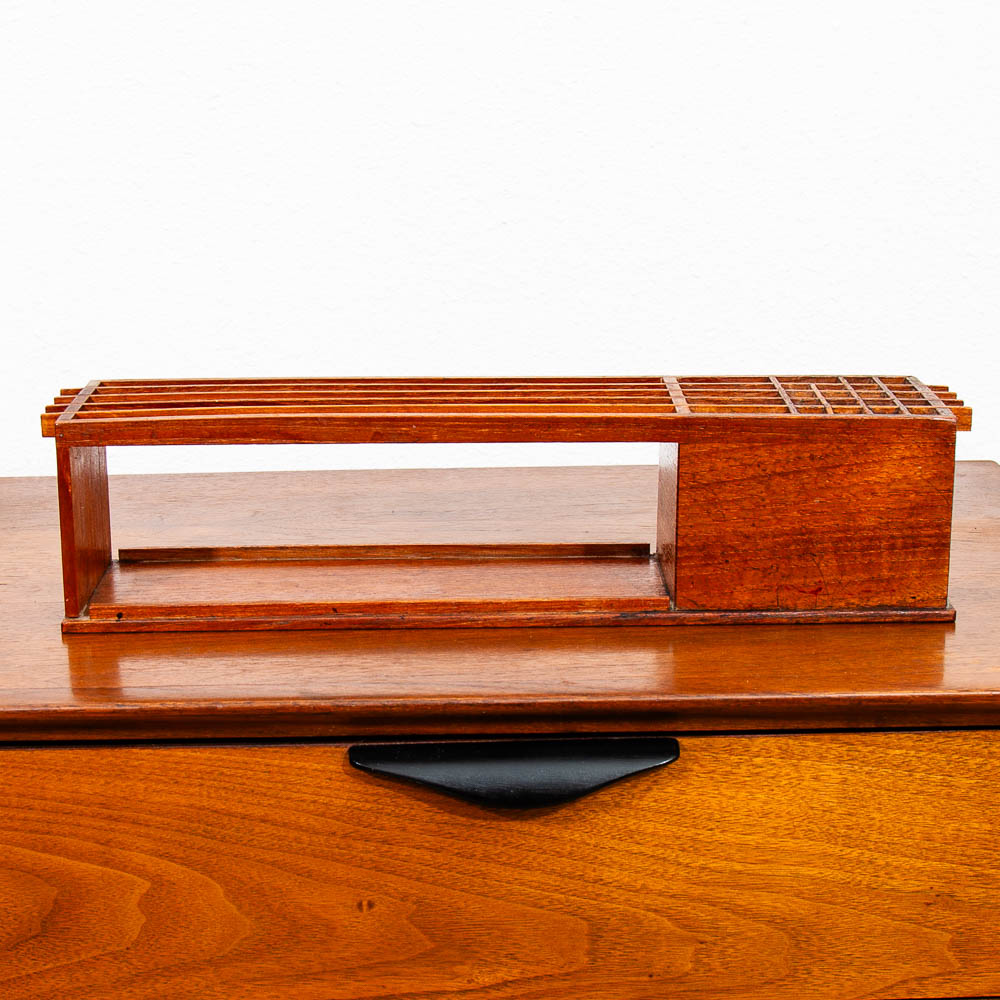 Vintage Mid Century Modern Japanese made teak desk organizer. Perfect for office supplies or artist tool storage. Please see all photos to ensure you know what you are buying. We include FREE SHIPPING in the listing price. Some exceptions apply, so please read the full shipping details below.