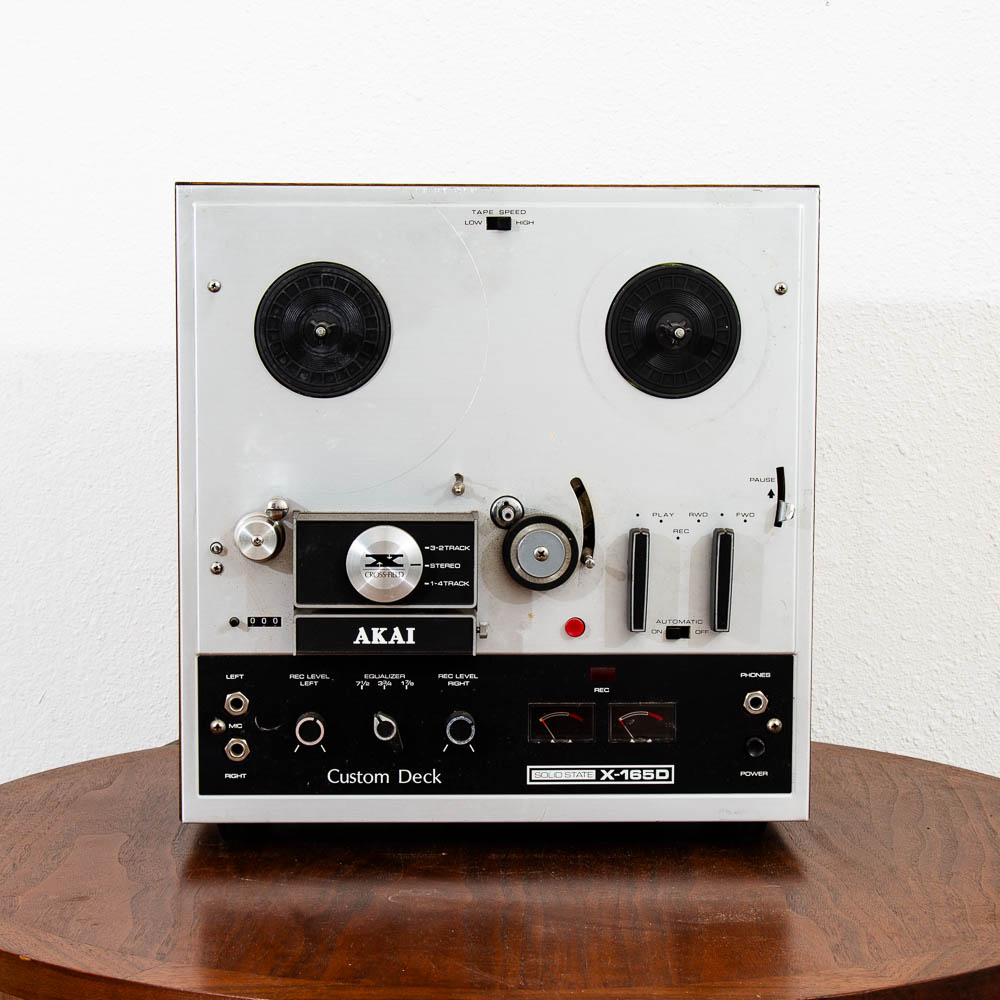 The Akai X-165D is a 4-track stereo reel to reel tape recorder with integral 8-track cartridge recorder.